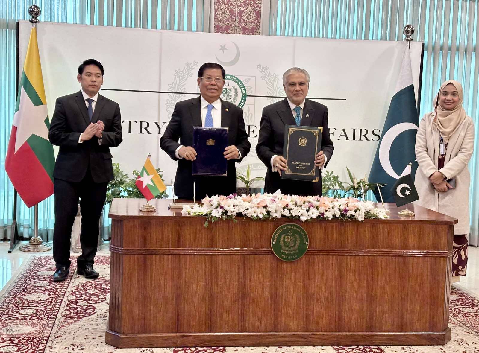 ပါကစ္စတန်နဲ့ မြန်မာနိုင်ငံ နှစ်နိုင်ငံအကြား စီးပွားရေးနဲ့ နည်းပညာအပါအဝင် ပူးပေါင်းဆောင်ရွက်ရေး သဘောတူညီမှု လက်မှတ်ရေးထိုးခဲ့ကြတယ်လို့ စစ်ကောင်စီ နိုင်ငံခြားရေးဌာနက ထုတ်ပြန်ပါတယ်။