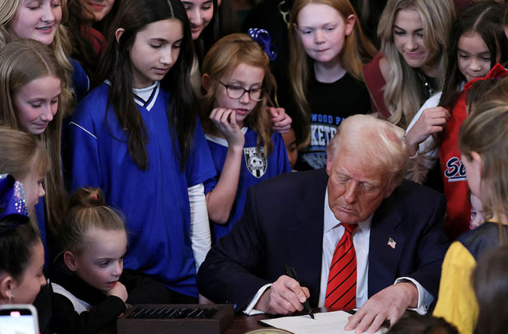 အမေရိကန်သမ္မတ ဒေါ်နယ်ထရမ့်ပ်ဟာ လိင်ပြောင်းလဲထားတဲ့ Transgender အမျိုးသမီးတွေနဲ့ မိန်းကလေးတွေ အမျိုးသမီးအားကစားပြိုင်ပွဲတွေမှာ ပါဝင်ယှဉ်ပြိုင်ခွင့် ပိတ်ပင်တဲ့ ဥပဒေကဲ့သို့ အာဏာတည်တဲ့ အမိန့်တရပ်ကို လက်မှတ်ရေးထိုးလိုက်ပါတယ်။