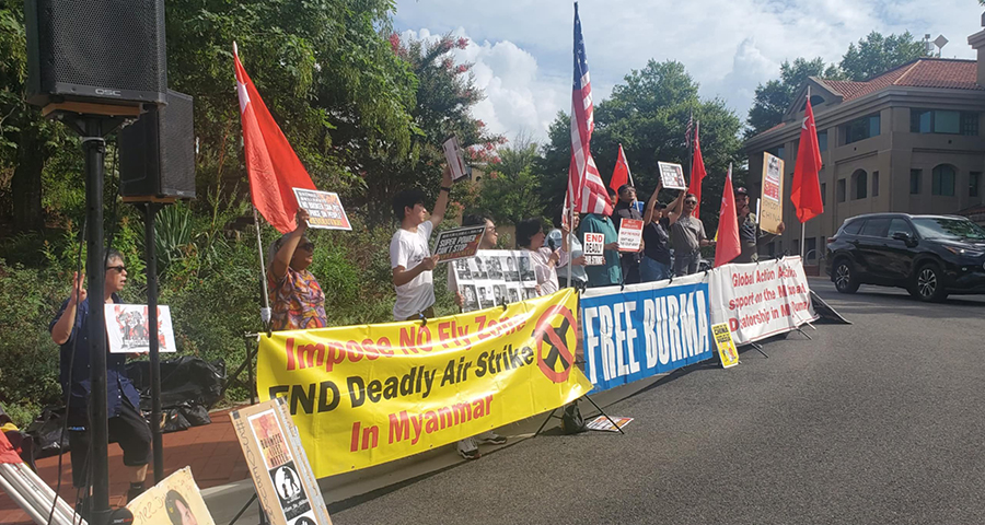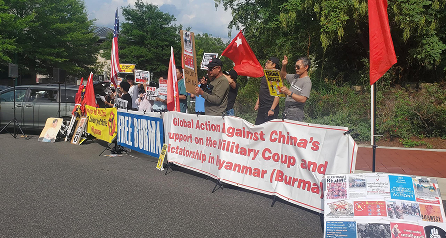 တရုတ်အစိုးရရဲ့ မြန်မာ့အရေးမှာ ပေါ်ပေါ်ထင်ထင်ဝင်ရောက်စွက်ဖက်ပြီး စစ်ကောင်စီဘက်က ရပ်တည်နေတာကို ပြန်သုံးသပ်ဖို့ တရုတ်ကွန်မြူနစ်ပါတီနဲ့အစိုးရကို အမေရိကန်ပြည်ထောင်စု၊ မြို့တော်ဝါရှင်တန်ဒီစီ၊ တရုတ်သံရုံးရှေ့မှာ မြန်မာနွယ်ဖွားတွေက ဒေသစံတော်ချိန် ဇူလိုင် ၁၀ ရက်နေ့ မွန်းလွဲပိုင်းက ဆန္ဒပြတိုက်တွန်းခဲ့ကြပါတယ်။