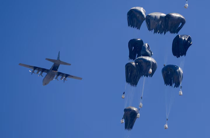 ဂါဇာကမ်းမြောင်ဒေသရှိ လူသားချင်းစာနာထောက်ထားမှုဆိုင်ရာ အခြေအနေတွေကို သက်သာရာရစေဖို့အတွက် ဂျော်ဒန်၊ ယူအေအီးနဲ့ ဥရောပနိုင်ငံတွေဟာ အကူအညီ ပါဆယ်ထုပ်တွေကို လေကြောင်းကနေ ကြဲချပေးခဲ့ပါတယ်။