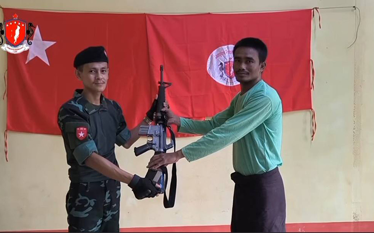 လောင်းလုံး ပြည်သူ့ကာကွယ်ရေးတပ်ဖွဲ့ဝင်တယောက်က “A2 တလက်၊ လက်ပစ်ဗုံး ၃ လုံး၊ အီနာဂါတလုံး၊ ကျည် ၂၀၀၊ ကျည်ဘောက်အတို ၁ ခု၊ အရှည် ၁ ခု၊ စကားပြောစက်တလုံး ယူဆောင်လာပါတယ်။ ဆုကြေးငွေအနေနဲ့ ကျပ်ငွေသိန်း ၃၀ ကို ချီးမြှင့်ခဲ့တယ်” လို့ ပြောပါတယ်။