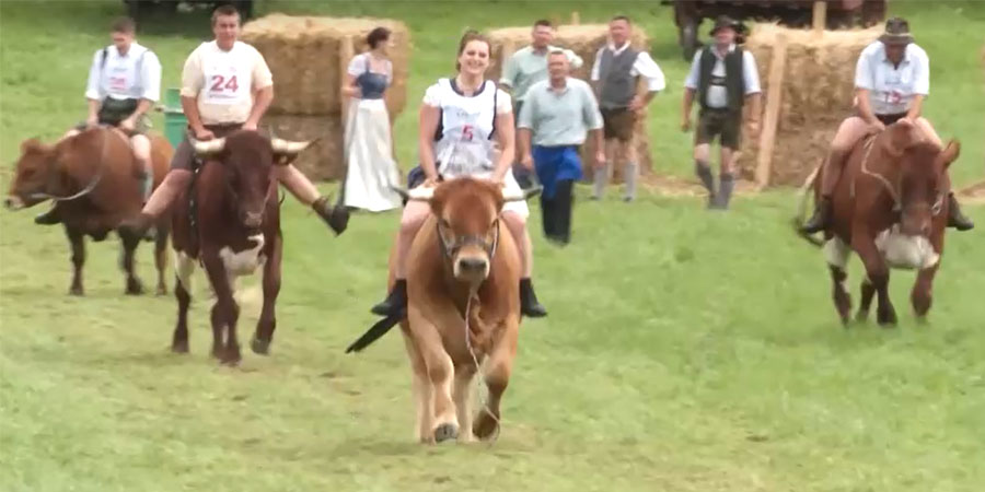 မြင်းစီးရတာထက် ခက်ခဲတဲ့ နွားစီးပြိုင်ပွဲကို ဂျာမနီနိုင်ငံတောင်ပိုင်း၊ ဟောင်ရှိုးဖန်းမြို့မှာ လေးနှစ်တကြိမ် ကျင်းပလေ့ရှိပါတယ်။