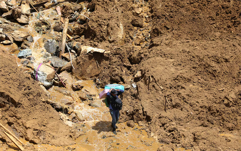 ကိုလံဘီယာ အနောက်တောင်ပိုင်းရှိ ကောက်ကာပြည်နယ်မှာ ရွှေတူးမိုင်းတွင်း ပြိုကျသွားပြီးနောက် ပိတ်မိနေတဲ့ မိုင်းတွင်းလုပ်သား ၇ ယောက်ကို ကယ်ထုတ်နိုင်ဖို့ စက်တင်ဘာ ၁၂ ရက်မှာ မြေကော်စက် ၁ စီးနဲ့ ရွှံ့မြေတွေကို တူးဖော်နေပါတယ်။