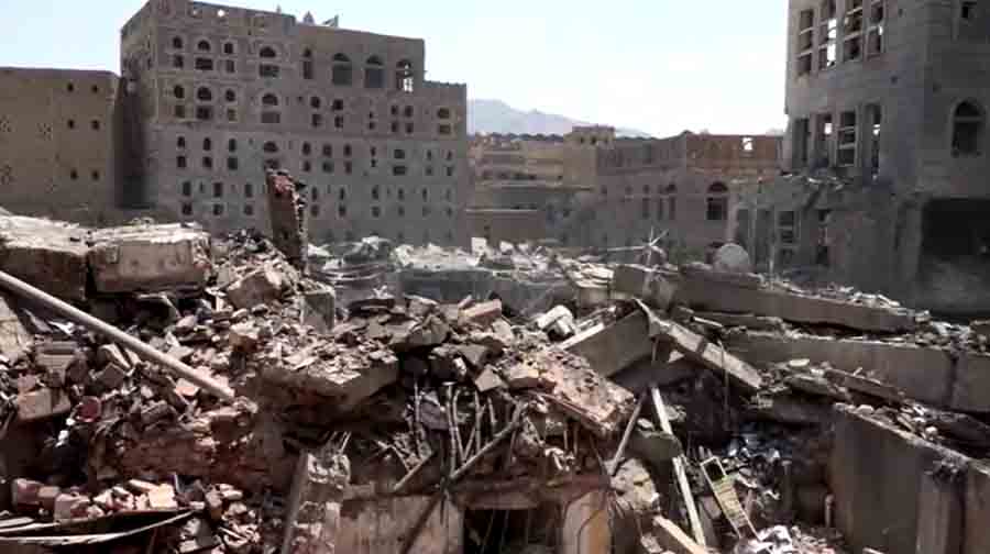 အစ္စရေးရဲ့ လေကြောင်းတိုက်ခိုက်မှုကြောင့် ယီမင်နိုင်ငံအလယ်ပိုင်း ဆာနာမြို့တော်က လူနေရပ်ကွက်တခု အပျက်အစီးပုံအဖြစ် ကျန်ရစ်ပါတယ်။
