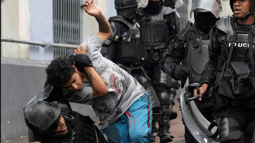 အီကွေဒေါအစိုးရရဲ့ ဒီဇယ်ဆီ အမတော်ကြေး ဖြတ်တောက်မှုအား ကန့်ကွက်ဆန္ဒပြသူတွေကို မြို့တော်ကွေတိုမှာ စက်တင်ဘာ ၁၆ ရက်က လူစုခွဲဖို့ ရဲတွေက မျက်ရည်ယိုဗုံးနဲ့ အဓိကရုဏ်း ထိန်းချုပ်ရေး နည်းဗျူဟာတွေကို သုံးခဲ့ကြပါတယ်။