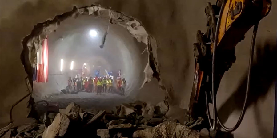 အီတလီဝန်ကြီးချုပ် ဂျော်ဂျာမီလိုနီနဲ့ သြစတြီးယားအဓိပတိ ခရစ္စတီယန်စတုတ်ကာတို့ တက်ရောက်တဲ့ အခမ်းအနားအတွင်း ဘရန်နာ ဥမင်လိုဏ်ခေါင်းမှ စူးစမ်းရှာဖွေရေး ဥမင်လိုဏ်ခေါင်းရဲ့ နောက်ဆုံးကျောက်သားအလွှာကို ထုချေ ဖြိုချလိုက်တာပါ။