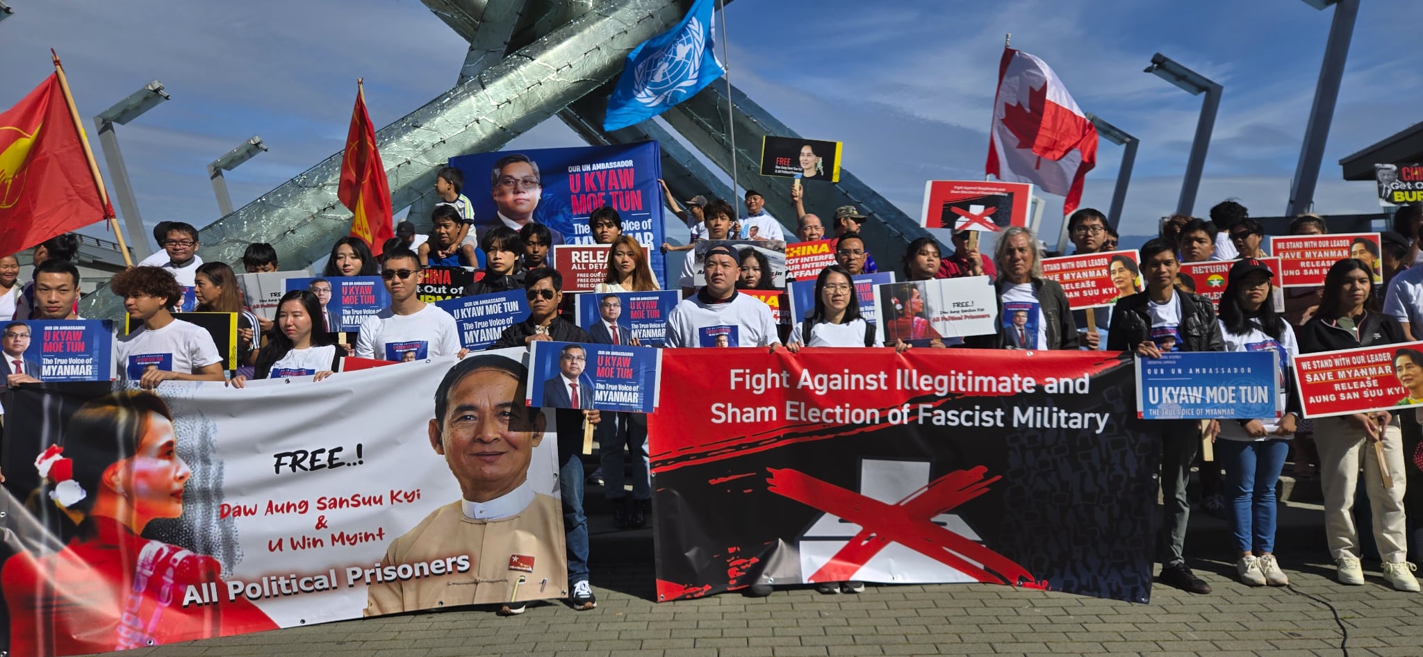 သံအမတ်ကြီးဦးကျော်မိုးထွန်းကို ကုလသမဂ္ဂမှာ အထူးတာဝန်လက်ခန့်ထားရေး၊ စစ်ကောင်စီရဲ့ အတုအယောင်ရွေးကောက်ပွဲကို ဆန့်ကျင်ကန့်ကွက်ရေးနဲ့ လူထုခေါင်းဆောင် ဒေါ်အောင်ဆန်းစုကြည် အပါအဝင် နိုင်ငံရေးအကျဉ်းသားတွေအားလုံး လွတ်မြောက်ရေးအတွက် ရည်ရွယ်ပြီး ဆန္ဒပြ တောင်းဆိုခဲ့ကြတာပါ။
