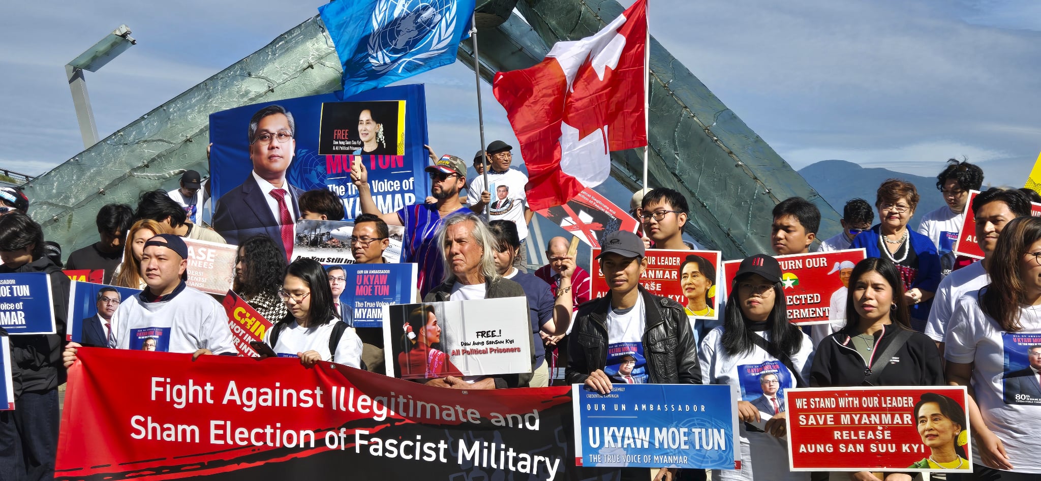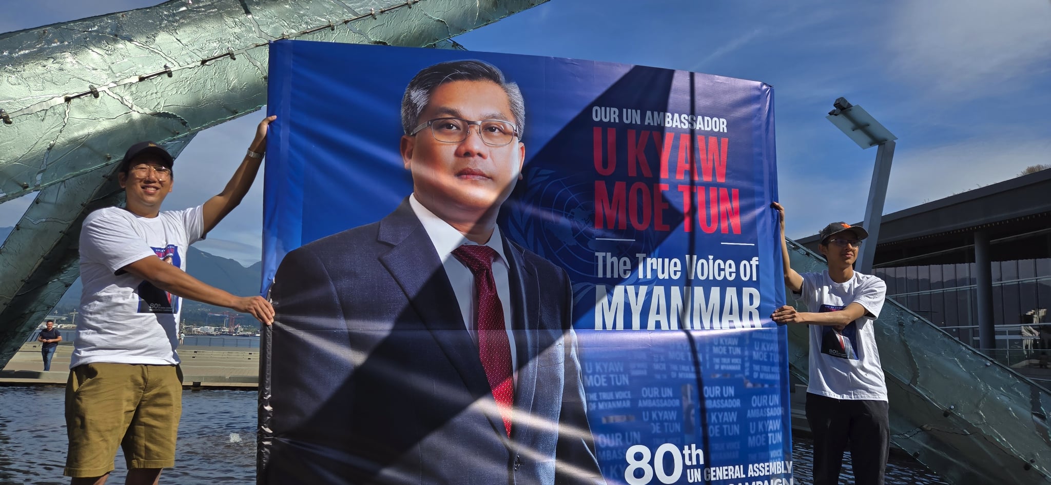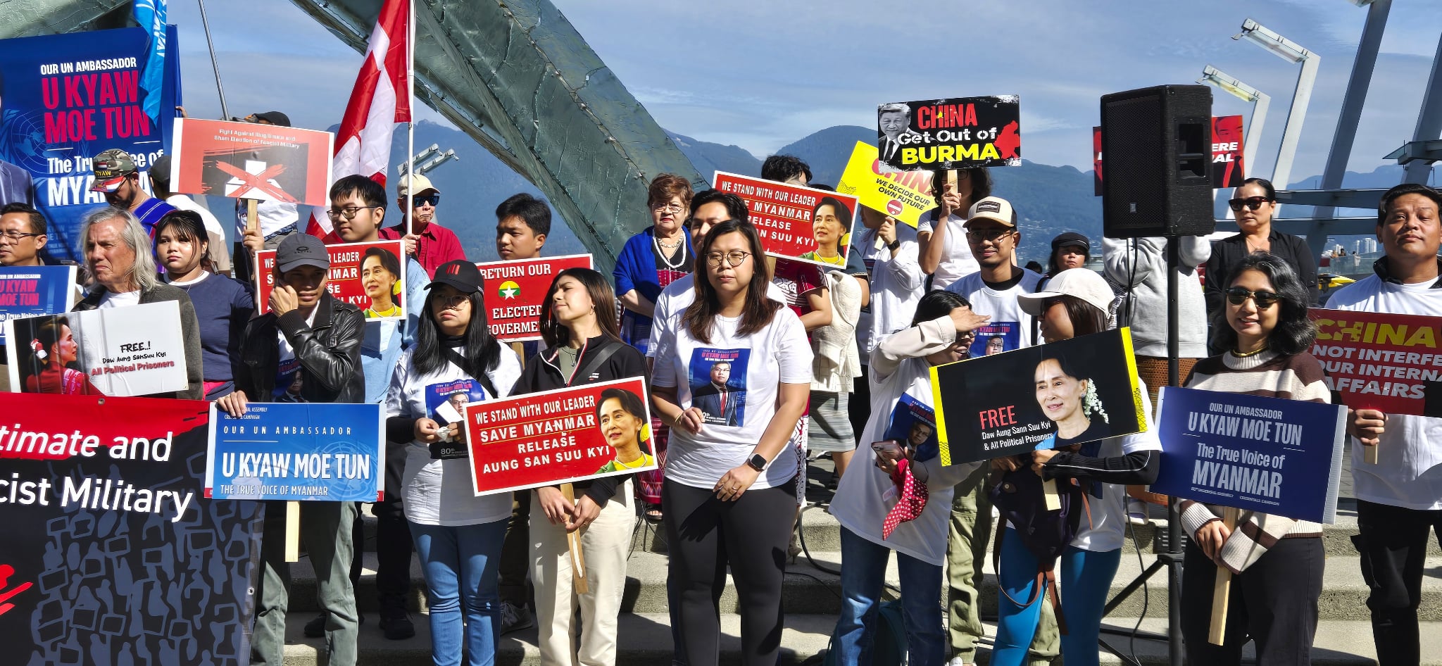သံအမတ်ကြီး ဦးကျော်မိုးထွန်းကို ကုလသမဂ္ဂဆိုင်ရာ မြန်မာအမြဲတမ်းကိုယ်စားလှယ်အဖြစ် ရာထူးတာဝန် ဆက်ထိန်းထားနိုင်ရေး လူထုထောက်ခံပွဲကို ကနေဒါနိုင်ငံ၊ ဗန်ကူးဗားမြို့မှာ ဒေသစံတော်ချိန် စက်တင်ဘာ ၂၀ ရက် နေ့လယ်က ကျင်းပခဲ့ပါတယ်။