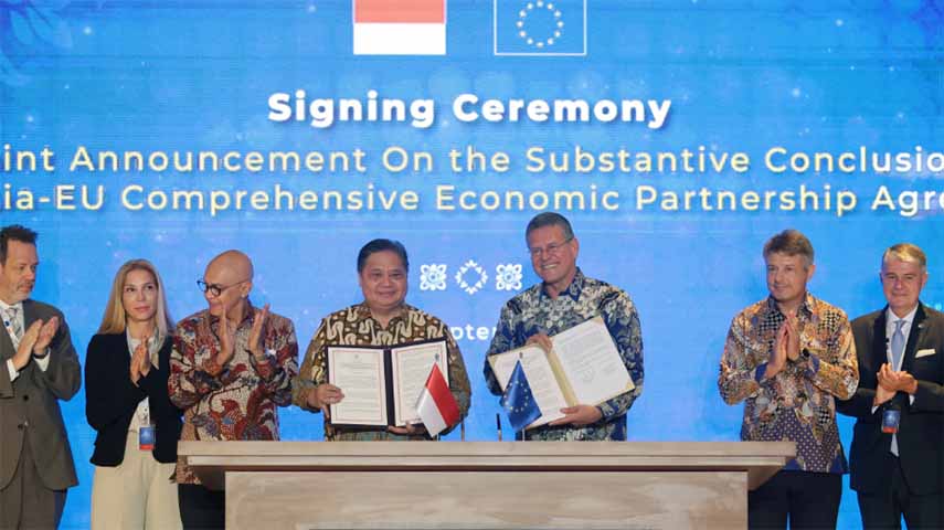 အင်ဒိုနီးရှားနဲ့ ဥရောပသမဂ္ဂတို့ဟာ ကုန်သွယ်ရေးနဲ့ ရင်းနှီးမြှုပ်နှံမှုတွေမြှင့်တင်ဖို့ ရည်ရွယ်တဲ့ ၉ နှစ်ကြာ ဆွေးနွေးပွဲပြီးတဲ့နောက် ပြီးပြည့်စုံတဲ့ စီးပွားရေးမိတ်ဖက်ဆိုင်ရာ သဘောတူညီချက်အတွက် စက်တင်ဘာ ၂၃ ရက်မှာ အပြီးသတ်ညှိနှိုင်းခဲ့ကြပါတယ်။