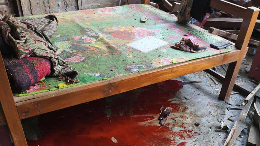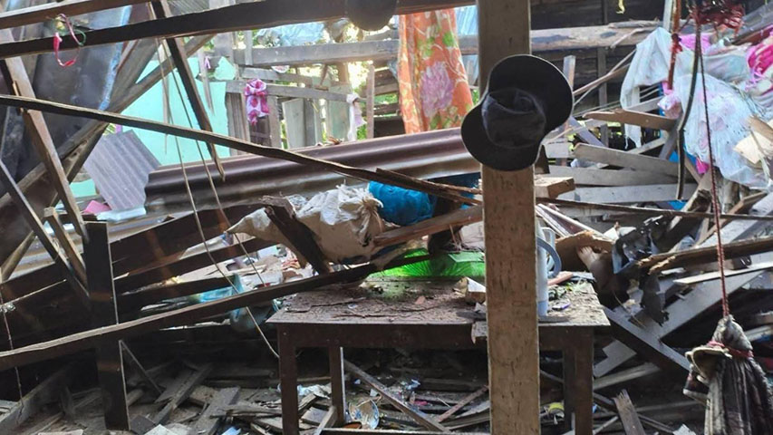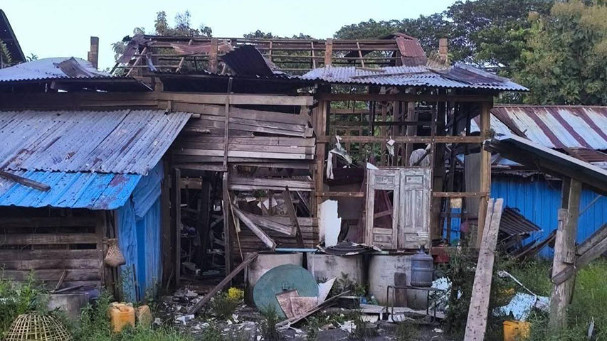 စစ်တပ်က ဒရုန်းနဲ့ကြဲချတဲ့ ဗုံးသီး ကျရောက်ပေါက်ကွဲခဲ့တဲ့ နေအိမ်မှာ မိသားစုဝင် ၄ ယောက်ရှိပြီး အခုသေဆုံးသွားသူဟာ အငယ်ဆုံးသားဖြစ်တဲ့ အသက် ၁၈ နှစ်အရွယ် ၁၀ တန်းကျောင်းသား မောင်အိုင်းစတိုင်း ဖြစ်တယ်လို့ ဆိုပါတယ်။