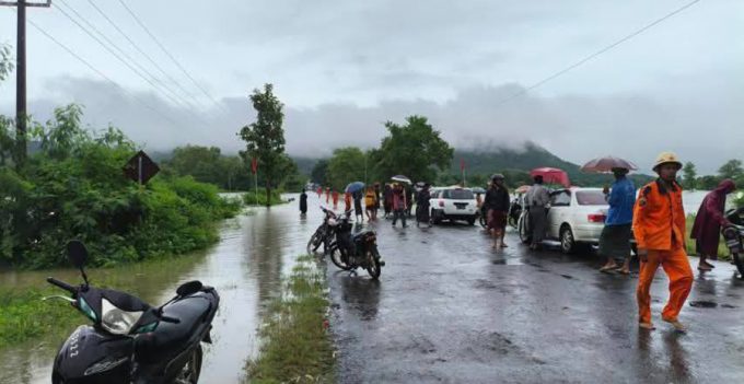 ပိတ်ထားရတဲ့ လမ်းပိုင်းကို ရေကျော်မှု လျော့ကျသွားရင် ပြန်လည်ဖြတ်သန်းခွင့်ပြုမယ်လို့ သိရပါတယ်။