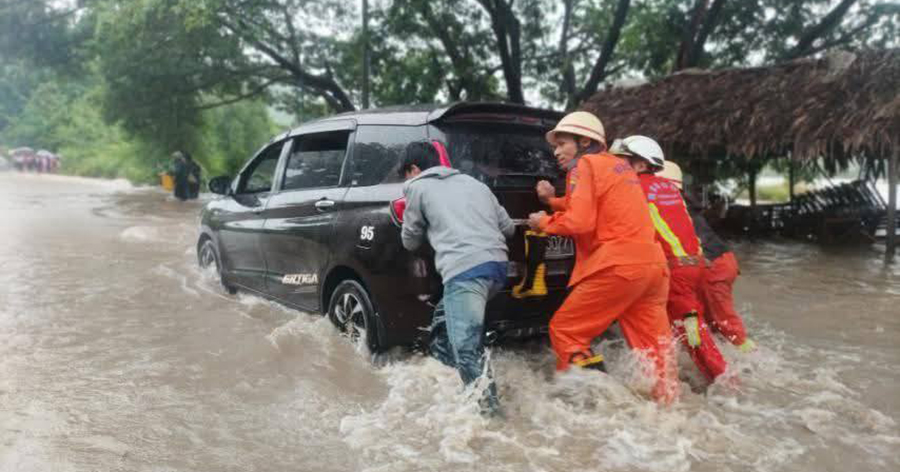 ရေကြီးရေလျှံဖြစ်နေတဲ့ ကျောက်ပန်းတောင်း-မိတ္ထီလာကားလမ်းမှာ နယ်မြေခံမီးသတ်တပ်ဖွဲ့တွေ၊ လူမှုကူညီရေးအသင်းတွေက ကူညီကယ်ဆယ်ရေးလုပ်ငန်းတွေ လုပ်ဆောင်ပေးနေတယ်လို့ သိရပါတယ်။