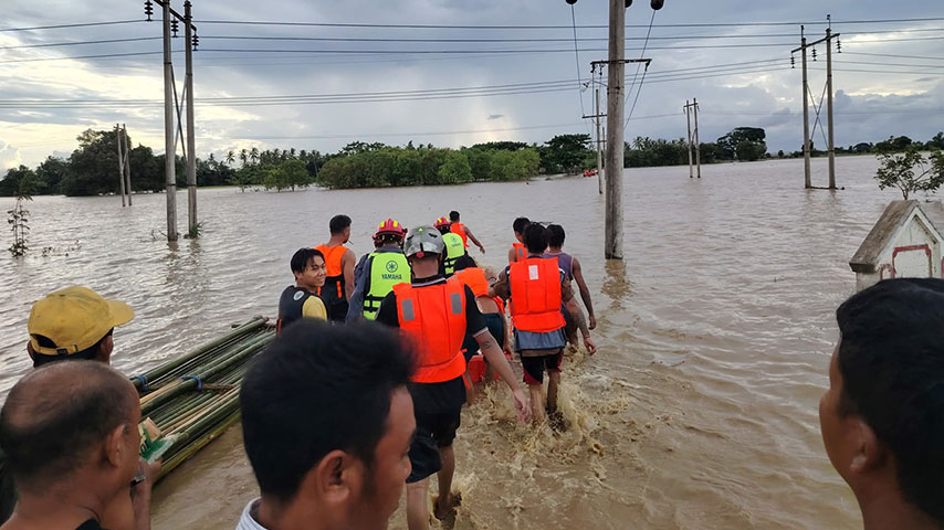 ရေဘေးသင့် ဒေသခံတယောက်က “ရေက ရုတ်တရက်ဆိုသလို တက်တာ မနက် ၁၀ နာရီ လောက်က ရေစဝင်လာတာပေါ့။ ၁၁ နာရီဝန်းကျင်လောက်ဆို ကူညီကယ်ဆယ်ရေးအဖွဲ့တွေက အရေးပေါ်ကူညီ ပြောင်းရွှေ့တာတွေလုပ်ပေးတာ”လို့ ပြောပါတယ်။