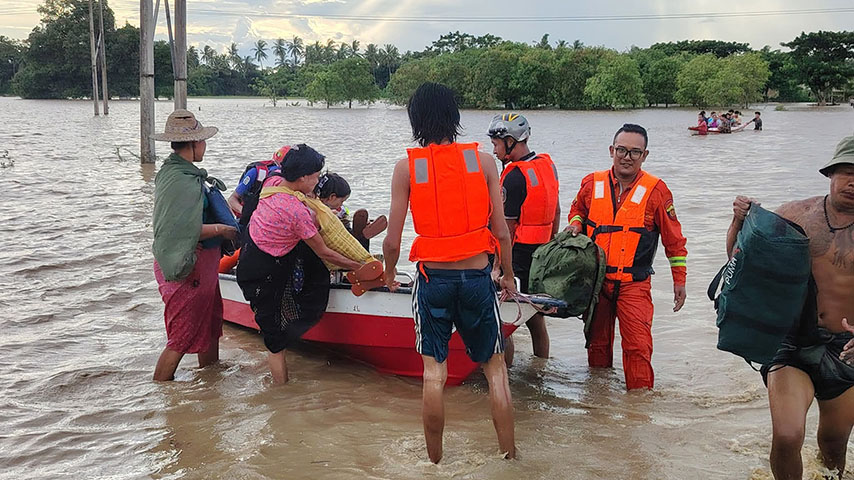 မြေပြင် ကူညီဆောင်ရွက်ပေးတဲ့သူတယောက်က “ရွာထဲကို ရေက အရှိန်နဲ့ဝင်တော့ မြုပ်ကုန်တာပေါ့။ ၅ ပေကျော် ကျော်လောက်အထိကို ရေတက်လာတာ၊ မြေနိမ့်ပိုင်းမှာရှိတဲ့ နေအိမ်အလုံး ၅၀ လောက်ဆို လုံးဝရေနစ်သွားတယ်။ အခုဒေသခံတွကို ကုန်းမြင့်ပိုင်းကို ကူညီပြောင်းရွှေ့ ကယ်ထုတ်ပေးထားတယ်” လို့ ပြောပါတယ်။
