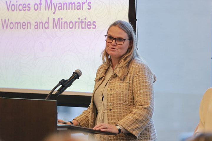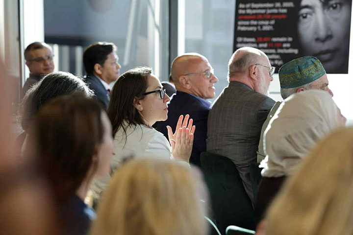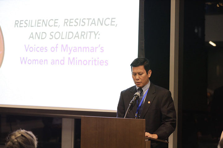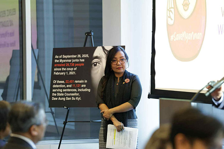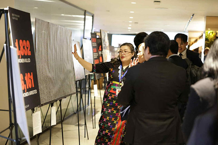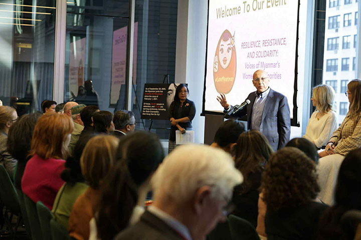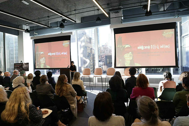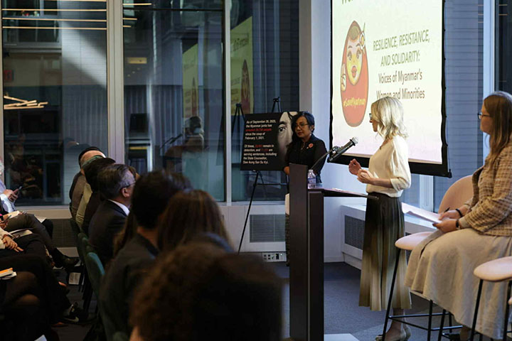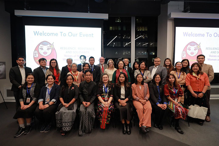 "တော်လှန်ရေးကာလ မြန်မာအမျိုးသမီးတွေနဲ့ လူနည်းစုတွေရဲ့ သင့်မြတ်ညီညွတ်ခြင်းနဲ့ ခံနိုင်ရည်စွမ်းကိုထင်ဟပ်သောအသံများ (Resistance, Resilience and Solidarity: The Voices of women and minorities in Myanmar) လို့ အမည်ပေးထားတဲ့ အခမ်းအနားကို ဒေသစံတော်ချိန် အောက်တိုဘာ ၁ ရက်က အမေရိကန်ပြည်ထောင်စု၊ နယူးယောက်မြို့မှာ ကျင်းပပါတယ်။