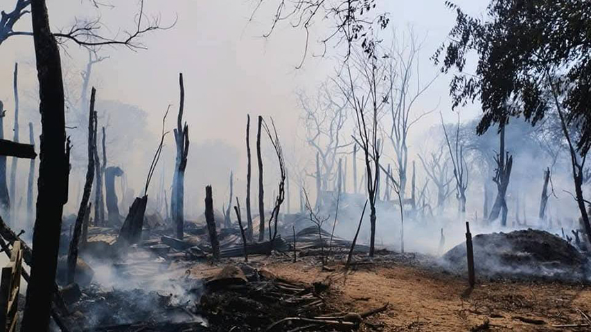 ဒေသခံတယောက်က “စစ်တပ်ဘက်က ၂ ရက်ဆက်တိုက်ရှို့တာ။ ခန့်မှန်း အိမ်ခြေ ၃၀ လောက် မီးလောင်ပျက်စီးပါတယ်။ တိုက်ပွဲတွေဖြစ်နေပါတယ်။ ရွာခံ ၁၅၀၀ ဝန်းကျင်လောက်ကတော့ ထွက်ပြေးကုန်ကြပြီ” လို့ ပြောပါတယ်။
