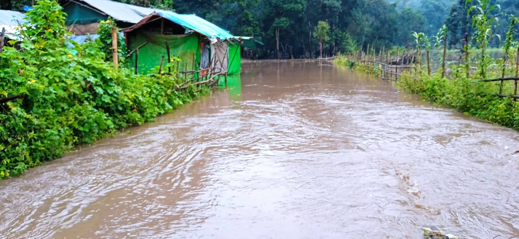 ဒီးမော့ဆိုအနောက်ခြမ်းမှာ မိုးဆက်တိုက်ရွာလို့ ကားလမ်းရေကျော်ပြီး ဒေသခံနဲ့ စစ်ရှောင်ပြည်သူတွေ သွားလာရခက်ခဲတာတွေ ကြုံနေရတဲ့အပြင် စစ်ရှောင်စခန်းတွေထဲ ရေဝင်လို့ နေရာရွှေ့ပြောင်းရတာတွေလည်း ရှိနေတာပါ။