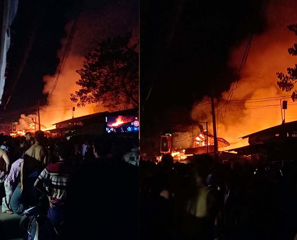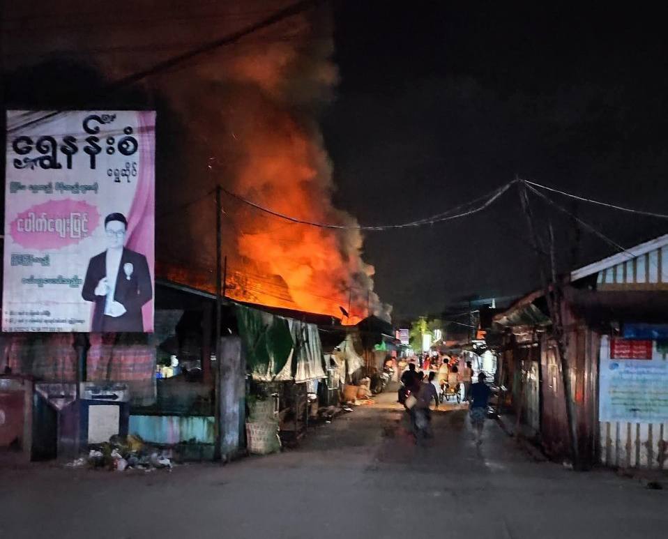 ဖြစ်စဉ်ကိုသိရှိသူတယောက်က “အရက်ဆိုင်ကနေ မီးစလောင်တာ။ မီးလောင်အားကောင်းတော့ ဘေးပတ်ပတ်လည်က ဆိုင်ခန်းတွေ မီးလောင်တဲ့အထဲ ပါသွားတာ” လို့ ပြောပါတယ်။