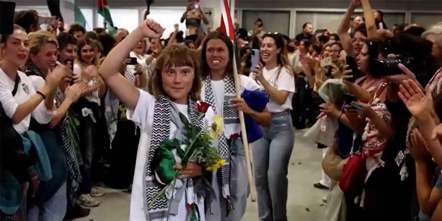 ဂါဇာကို ပင်လယ်ရေကြောင်းကနေ အကူအညီပေးဖို့ ကြိုးစားတဲ့ ရေယာဉ်အုပ်စုနဲ့ လိုက်ပါလာခဲ့တဲ့ နာမည်ကျော် ရာသီဥတုအရေးလှုပ်ရှားသူ ဆွီဒင်နိုင်ငံသူ ဂရီတာသန်းဘာ့ဂ် အပါအဝင် တက်ကြွလှုပ်ရှားသူ ၁၇၀ ကို အစ္စရေးက နှင်ထုတ်လိုက်ပါတယ်။