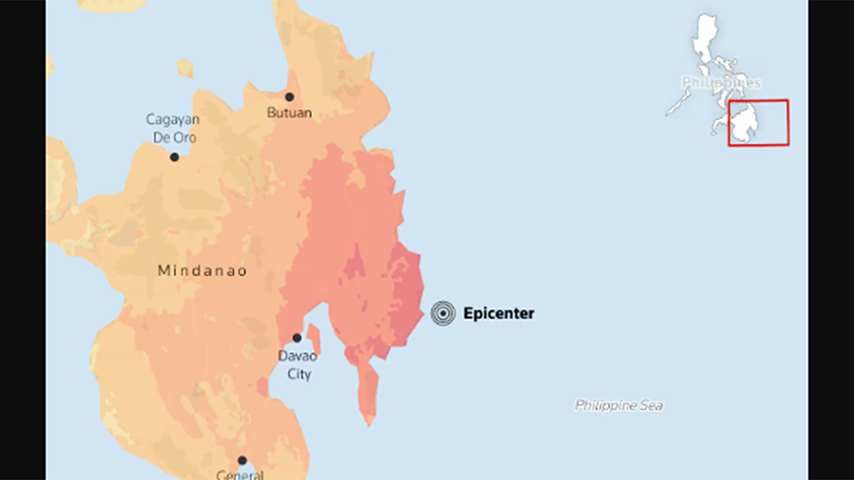 ဖိလစ်ပိုင်နိုင်ငံတောင်ပိုင်း၊ မင်ဒါနာအိုကျွန်း ကမ်းလွန်ပင်လယ်ပြင်မှာ အင်အားပြင်းငလျင်တခု လှုပ်ခတ်သွားခဲ့ပါတယ်။