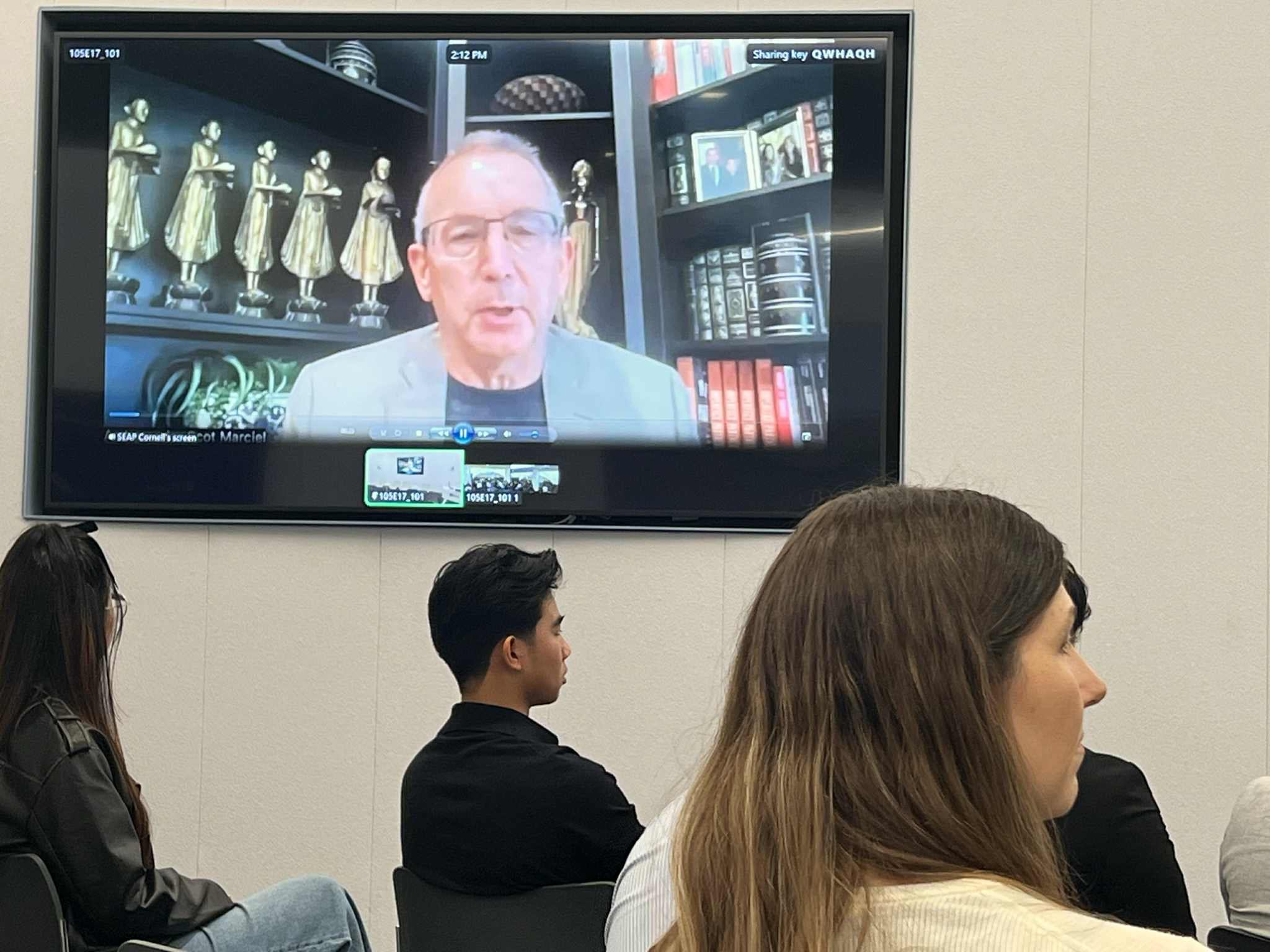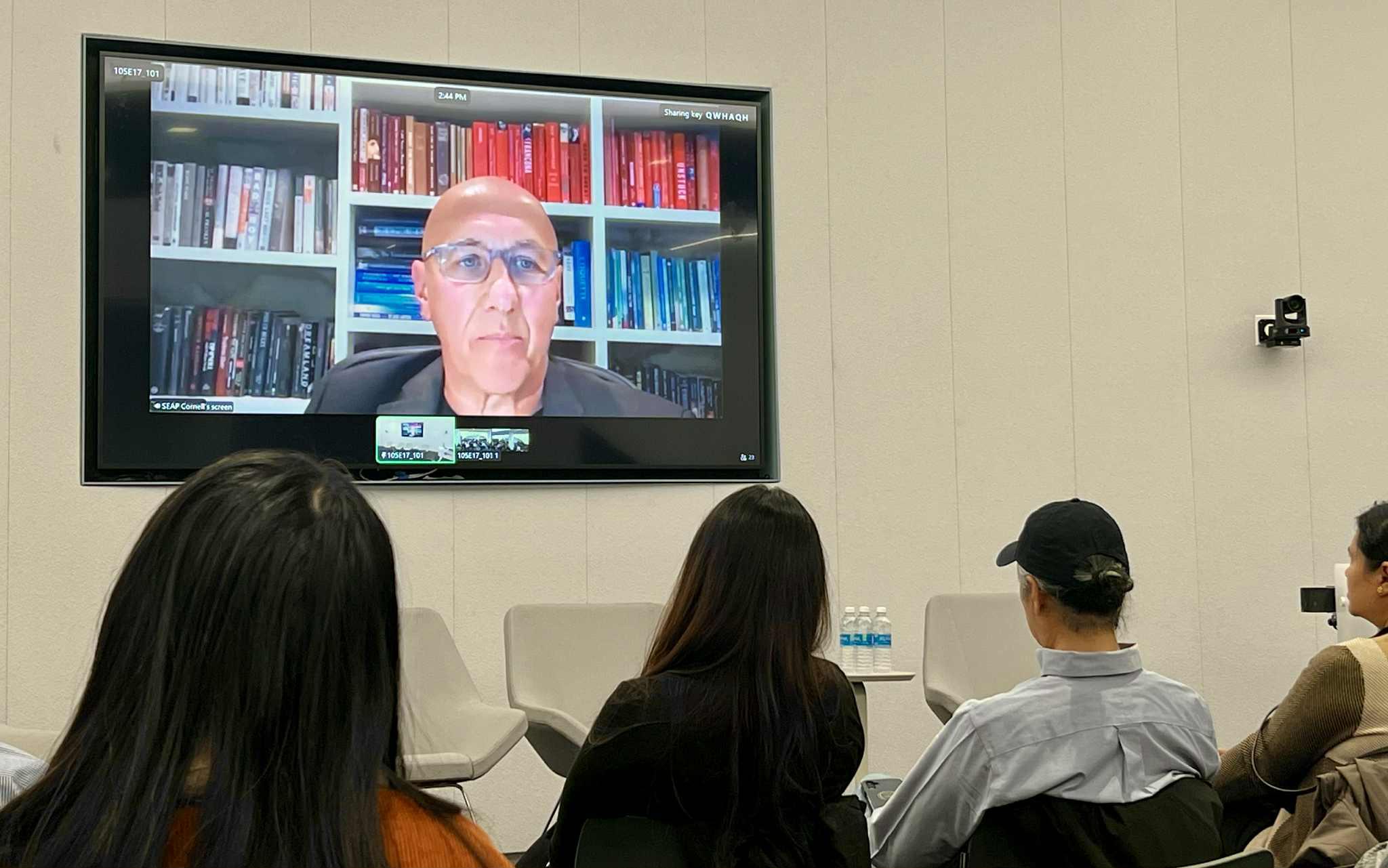 စကားဝိုင်းမှာ တွမ်အင်ဒရူးနဲ့ ပါမောက္ခရှောင်တာနယ်တို့ အပြင် NYU Director John Gershman ၊ US immigration Attorney David Goldbas ၊ ဒေါက်တာမီမီဝင်းဘတ်၊ ဒေါ်အောင်ဆန်းစုကြည်ရဲ့ သားငယ် ကင်မ်အဲရစ် (ခ) ကိုထိန်လင်း၊ Myanmar Center ဦးဆောင်သူ ကိုရဲရင့်မြင့်မိုရ်တို့ ဦးဆောင်ဆွေးနွေးခဲ့ပါတယ်။