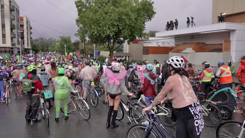 အော်ရီဂွန်ပြည်နယ်၊ ပေါ့လန်ရှိမှာရှိတဲ့ ရာနဲ့ချီတဲ့ ဒေသခံ စက်ဘီးစီးသမားတွေဟာ ကိုယ်လုံးတီးတွေနဲ့ မိုးသည်းပြီး အေးတဲ့ ရာသီဥတု အခြေအနေမှာ လူဝင်မှုကြီးကြပ်ရေးနဲ့ အကောက်ခွန်ရုံးတို့ဆီ မိုင်ပေါင်းများစွာ စက်ဘီးစီးခဲ့တာပါ။
