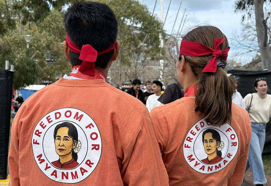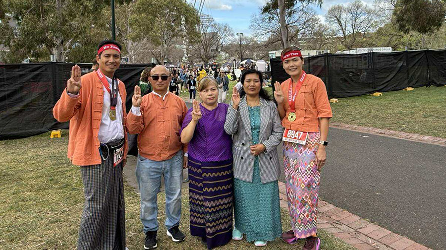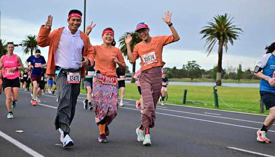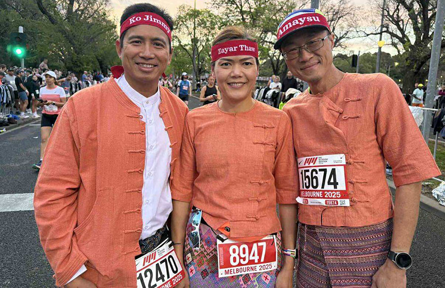 ဩစတြေးလျနိုင်ငံမှာ အောက်တိုဘာ ၁၂ ရက်က ကျင်းပတဲ့ Nike Melbourne မာရသွန်ပြေးပွဲမှာ မြန်မာနိုင်ငံသား ၂ ယောက်နဲ့ မလေးရှားနိုင်ငံသား တယောက်တို့ဟာ အမျိုးသားဒီမိုကရေစီအဖွဲ့ချုပ် (NLD) ဝတ်စုံဝတ်ဆင်ပြီး ဒေါ်အောင်ဆန်းစုကြည်၊ ကိုဂျင်မီနဲ့ ကိုဇေယျာသော်တို့ရဲ့ နာမည်တွေ ရေးထိုးထားတဲ့ ခေါင်းစည်းပဝါစည်းကာ ဝင်ရောက် ယှဉ်ပြိုင်ခဲ့ပါတယ်။
