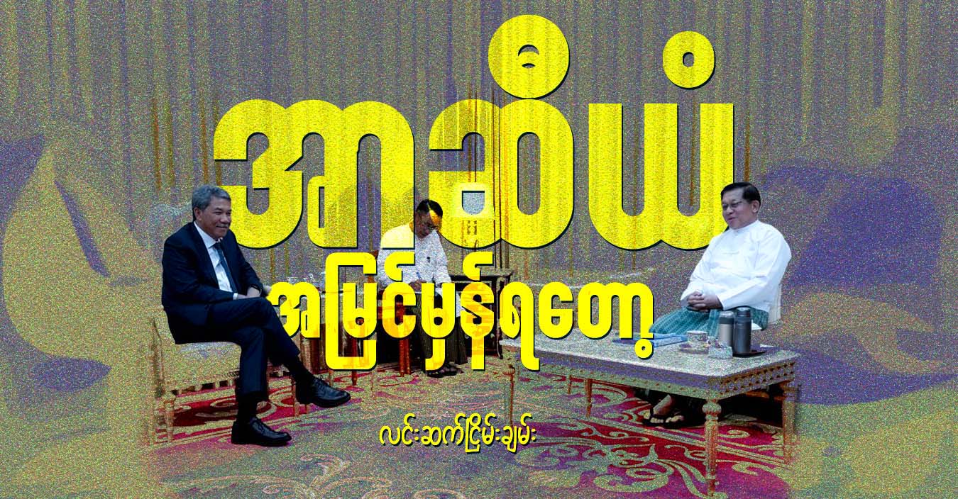 အာဆီယံက မွေးကတည်းက သေနေပြီဖြစ်တဲ့ အာဆီယံမူ ၅ ရပ်ကို ဘုရားဟောတရား ထာဝရအမှန်တရားပမာ ကျစ်ကျစ်ပါဆုပ်ထားလေတော့ အာဆီယံကိုယ်စားပြု မလေးရှား နိုင်ငံခြားရေးဝန်ကြီးကလည်း လှေကြီးထိုးရိုးရိုးပဲ အကြမ်းဖက်မှုတွေ ရပ်ရေး၊ လူသားချင်းစာနာမှု အကူအညီတွေ အတားအဆီးမရှိ ပေးနိုင်ရေးနဲ့ အားလုံးပါဝင်တဲ့ တွေ့ဆုံဆွေးနွေးမှု ဖြစ်မြောက်ရေးတို့ကို ဆွံ့အနားမကြား စစ်ဗိုလ်ချုပ်များနဲ့ တွေ့ဆုံစဉ် ဆွေးနွေးခဲ့တယ်လို့လည်း ဆိုတယ်။