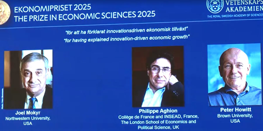 ၂၀၂၅ ခုနှစ်အတွက် စီးပွားရေးသိပ္ပံဆိုင်ရာ နိုဘယ်လ်ဆုကို အမေရိကန်၊ ကနေဒါနဲ့ ပြင်သစ်က ပညာရှင် ၃ ယောက် ပူးတွဲရရှိသွားပါတယ်။