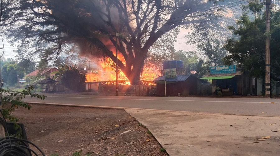 မြို့ထဲ ဌာနဆိုင်ရာရုံးတွေ မီးလောင်နေချိန် လက်နက်ကြီး၊ လက်နက်ငယ် ပစ်ခတ်သံတွေလည်း ကြားရပြီးနောက် သီပေါ ဒုဌဝတီတံတားလည်း အဝင်၊ အထွက် ပိတ်သွားတယ်လို့ ဆိုပါတယ်။
