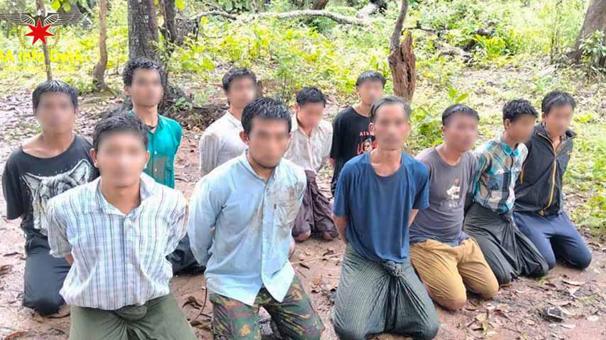 ဒါပေမဲ့ AA က ထုတ်ပြန်တဲ့ ဓာတ်ပုံမှာတော့ စစ်တပ် တပ်ဖွဲ့ဝင် ၁၁ ယောက် ဒူးထောက်နေတဲ့ပုံပါရှိပါတယ်။