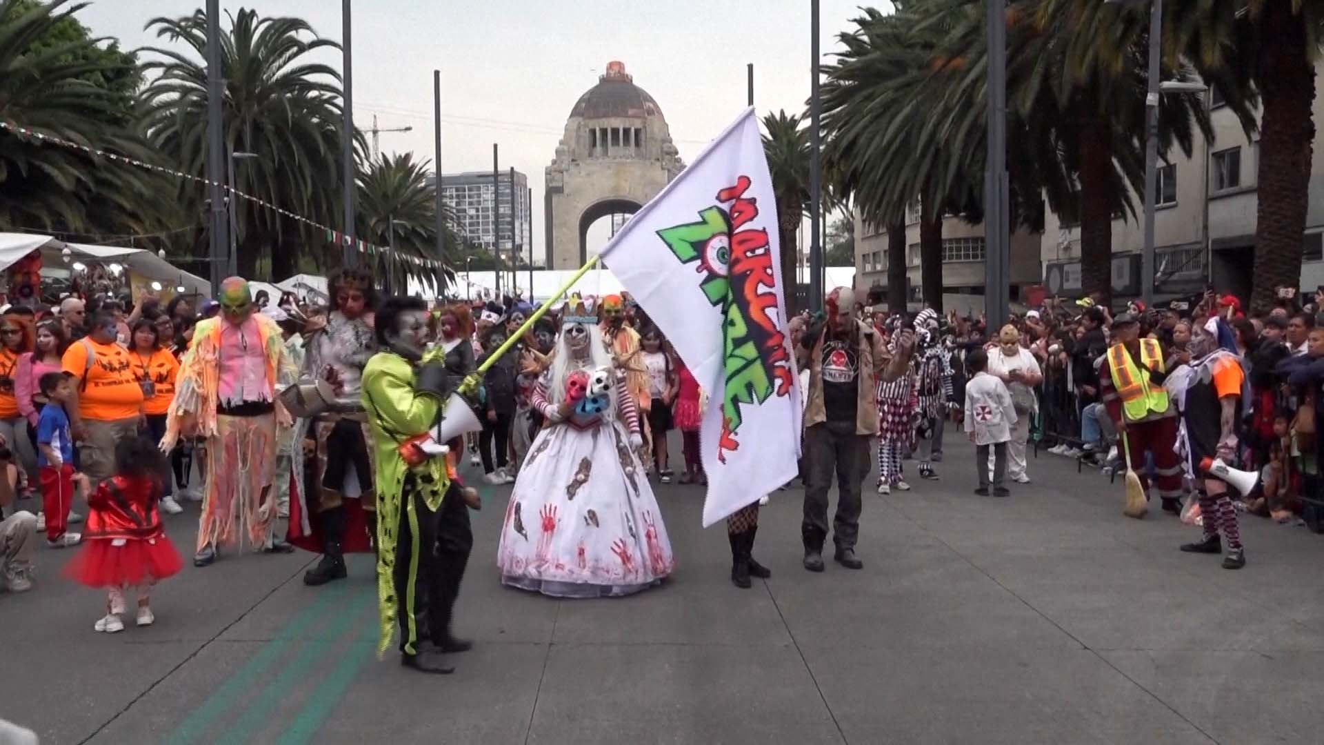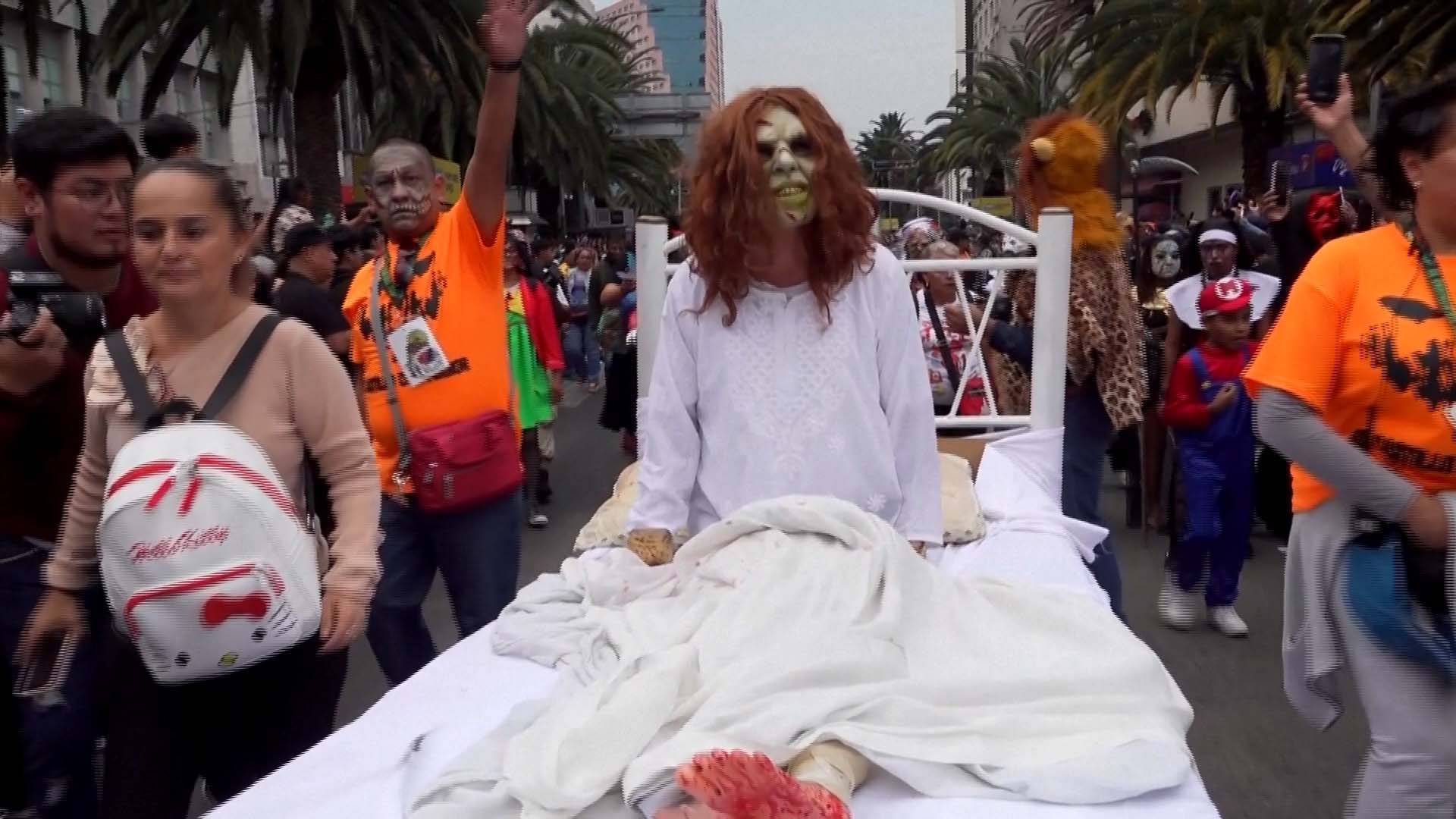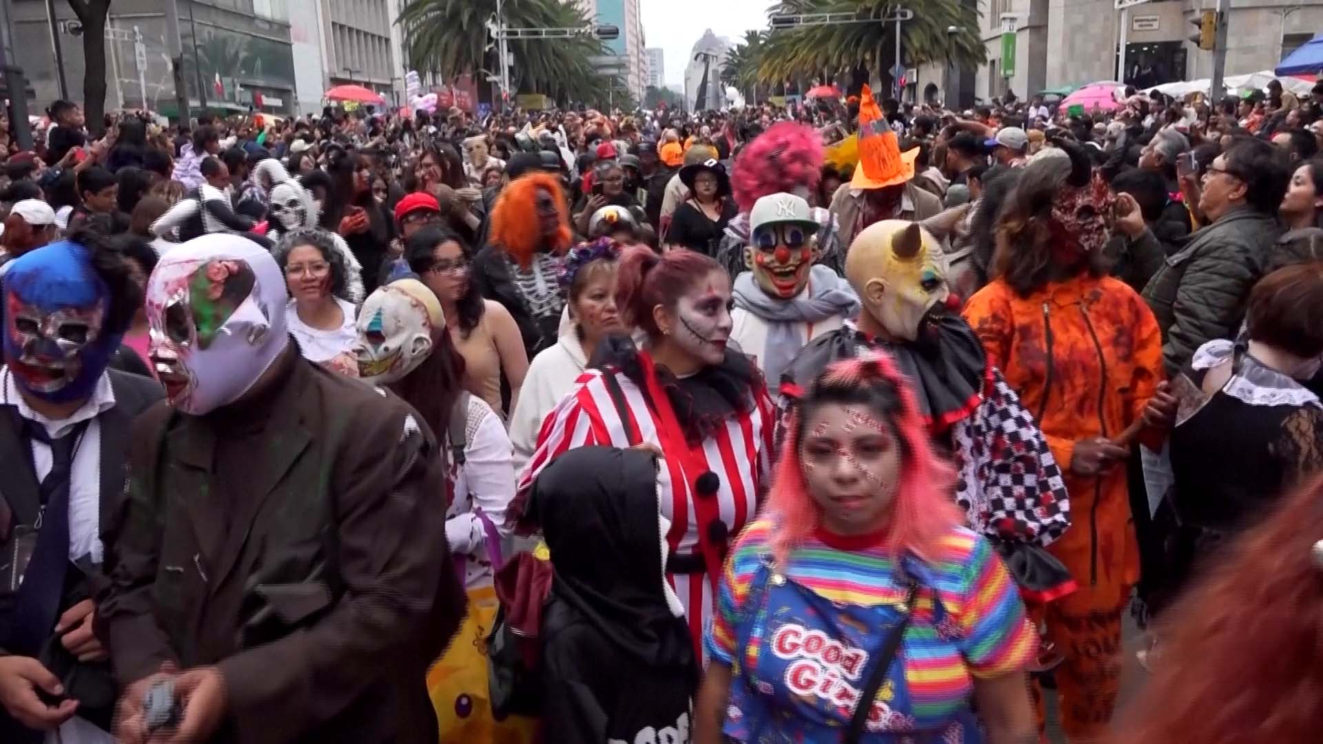 အောက်တိုဘာ ၁၈ ရက်က မက္ကဆီကိုစီးတီး မြို့လယ်ကောင်မှာ ဖုတ်ကောင်လို ဝတ်စားပြီး မိတ်ကပ်ပြင်ထားတဲ့ လူထောင်ချီ စုဝေးခဲ့ကြပါတယ်။