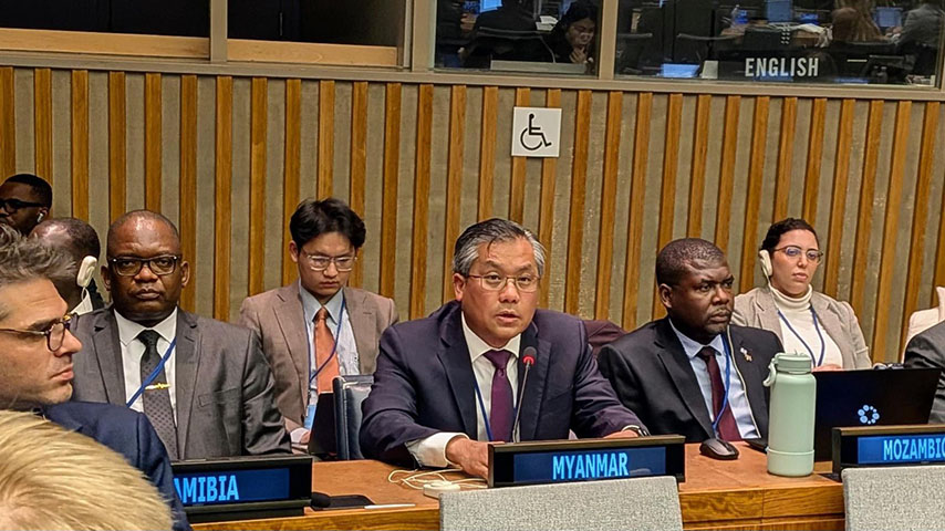 အောက်တိုဘာ ၂၂ ရက်က နယူးယောက်မြို့မှာကျင်းပတဲ့ အကြိမ် ၈၀ မြောက် ကုလသမဂ္ဂအထွေထွေညီလာခံ၊ လက်နက်ဖျက်သိမ်းရေးနဲ့ နိုင်ငံတကာလုံခြုံရေးကော်မတီ (ပထမကော်မတီ)ရဲ့ တခြားအဖျက်စွမ်းအားပြင်းလက်နက်များ ဘာသာရပ်မူဝါဒရေးရာ ဆွေးနွေးမှု အစီအစဉ်မှာ မြန်မာသံအမတ်ကြီးက မိန့်ခွန်းပြောကြားစဉ် ပြောကြားလိုက်တာပါ။