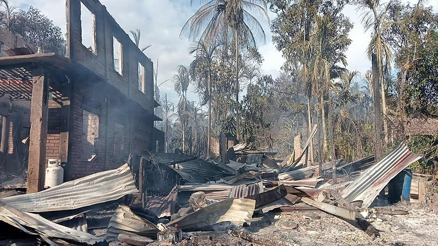 ဒါ့အပြင် ကျေးရွာထဲမှာကျန်ခဲ့တဲ့ အသက် ၆၀ ကျော် အမျိုးသားကို ရိုက်နှက်ခဲ့ပြီး လမ်းမလျှောက်နိုင်တဲ့ မိန်းမဖြစ်သူကိုလည်း အိမ်ပေါ်ကနေ ဆွဲချကာ နေအိမ်ကိုပါ မီးရှို့ခဲ့တယ်လို့ ဆိုပါတယ်။