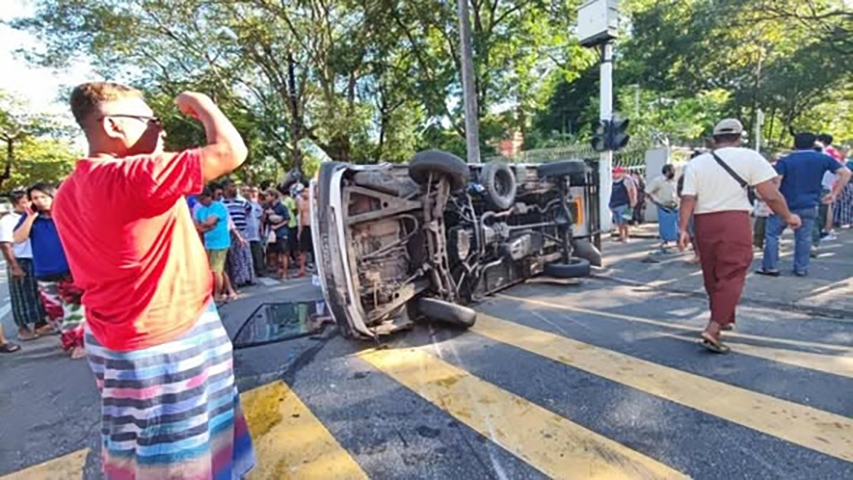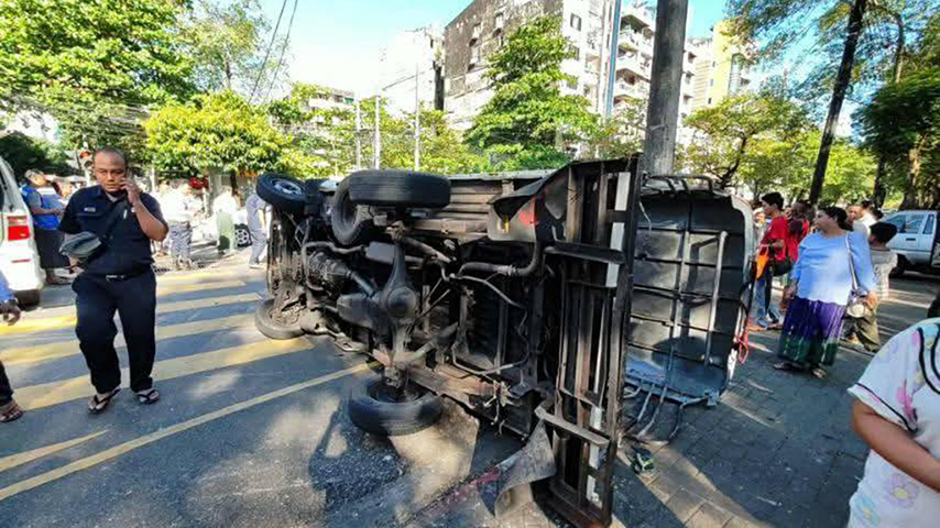 “တက္ကစီက မီးစိမ်းလို့မောင်းနေတာ၊ သူက အရှိန်နဲ့လာပြီး မီးနီကို အလွတ်ဖြတ်တာ၊ အရှိန်မထိန်းနိုင်ဘဲ မှောက်တဲ့သဘော။”