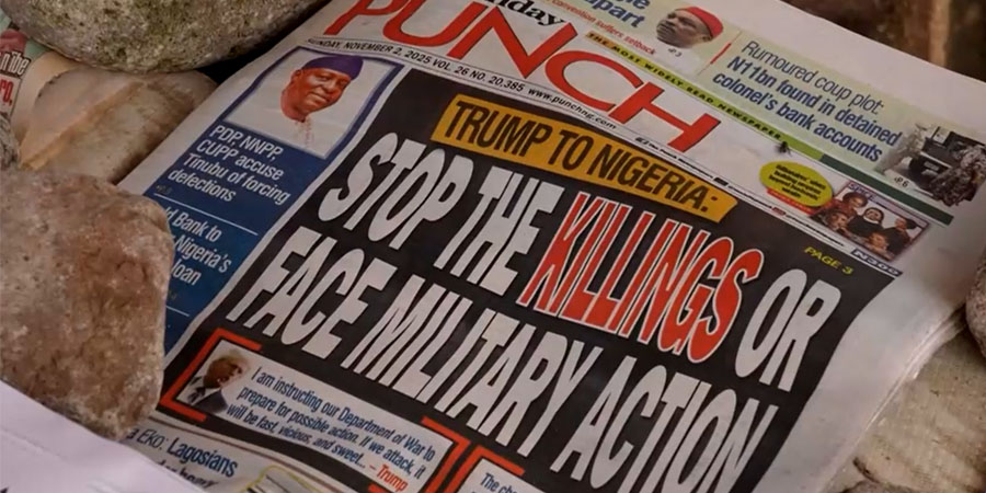 အနောက်အာဖရိကနိုင်ငံဖြစ်တဲ့ နိုင်ဂျီးရီးယားနိုင်ငံမှာ ခရစ်ယာန်တွေကို သတ်ဖြတ်မှုကို နှိမ်နင်းဖို့ ပျက်ကွက်ရင် နိုင်ဂျီးရီးယားအပေါ် စစ်ရေးအရ အမြန်အရေးယူဖို့ ဖြစ်နိုင်ခြေအတွက် ပြင်ဆင်ထားဖို့ ကာကွယ်ရေးဝန်ကြီးဌာနကို ညွှန်ကြားခဲ့တယ်လို့ အမေရိကန်သမ္မတ ဒေါ်နယ်ထရမ့်ပ်က နိုဝင်ဘာ ၁ ရက်မှာ ပြောပါတယ်။
