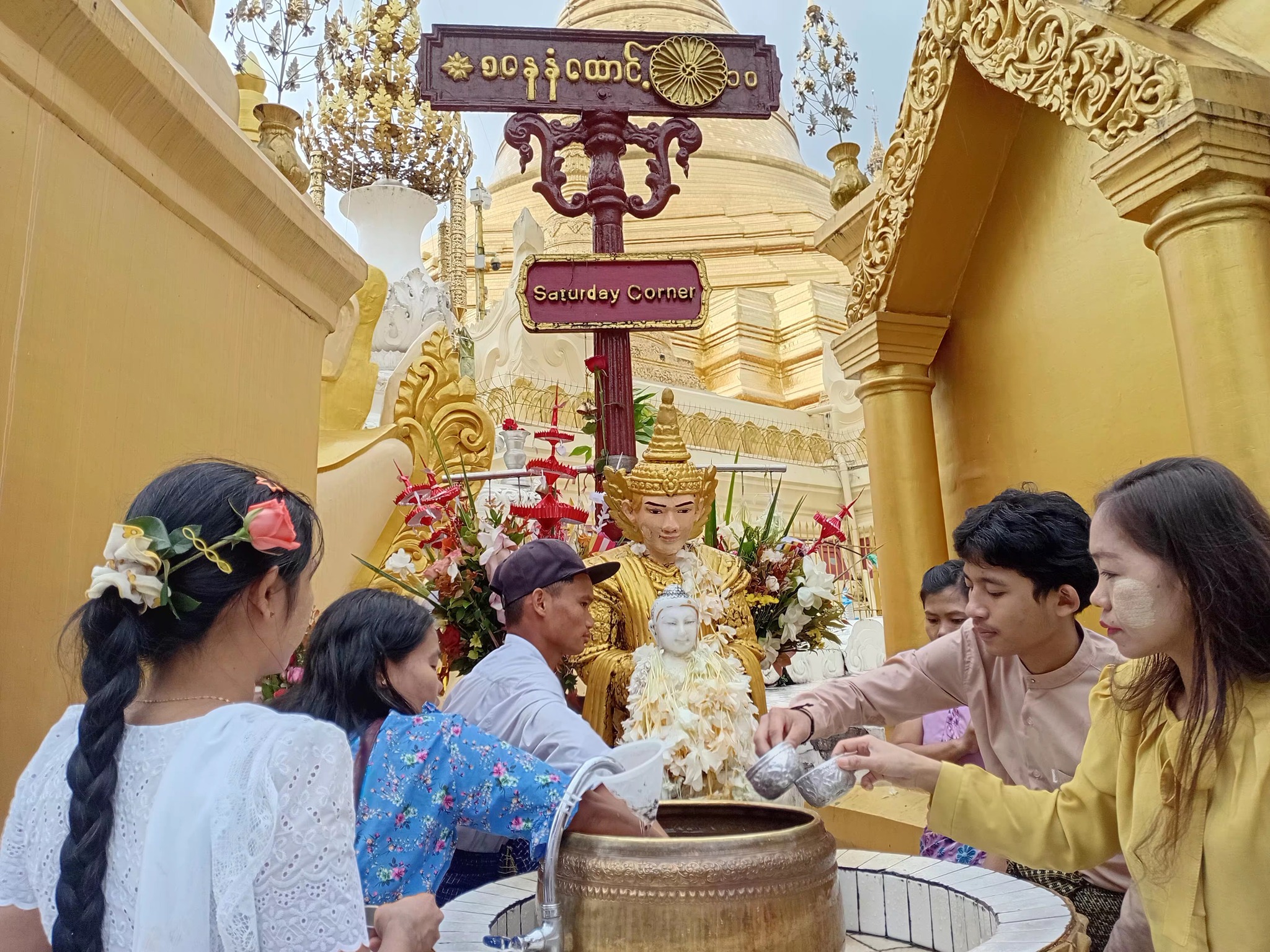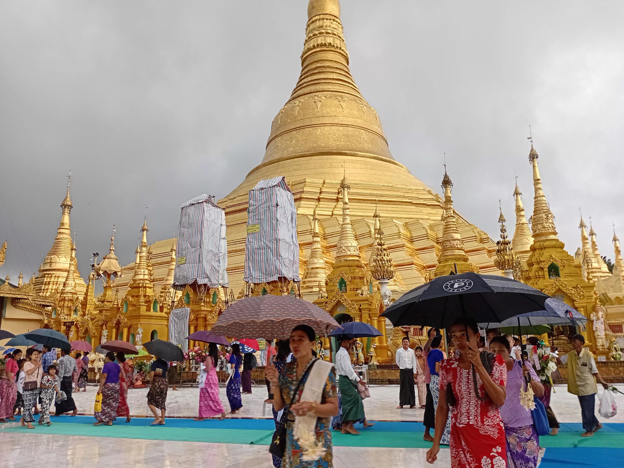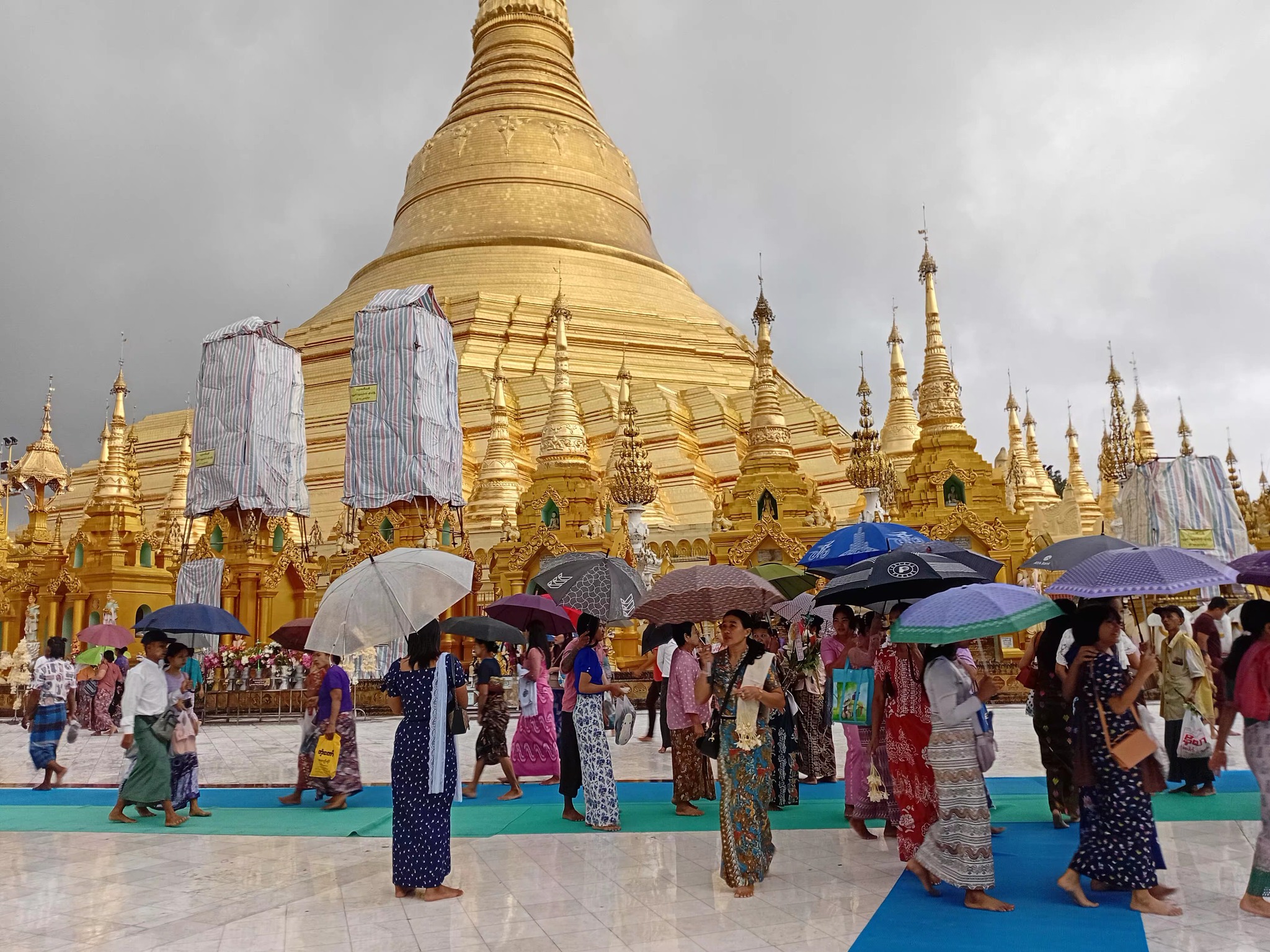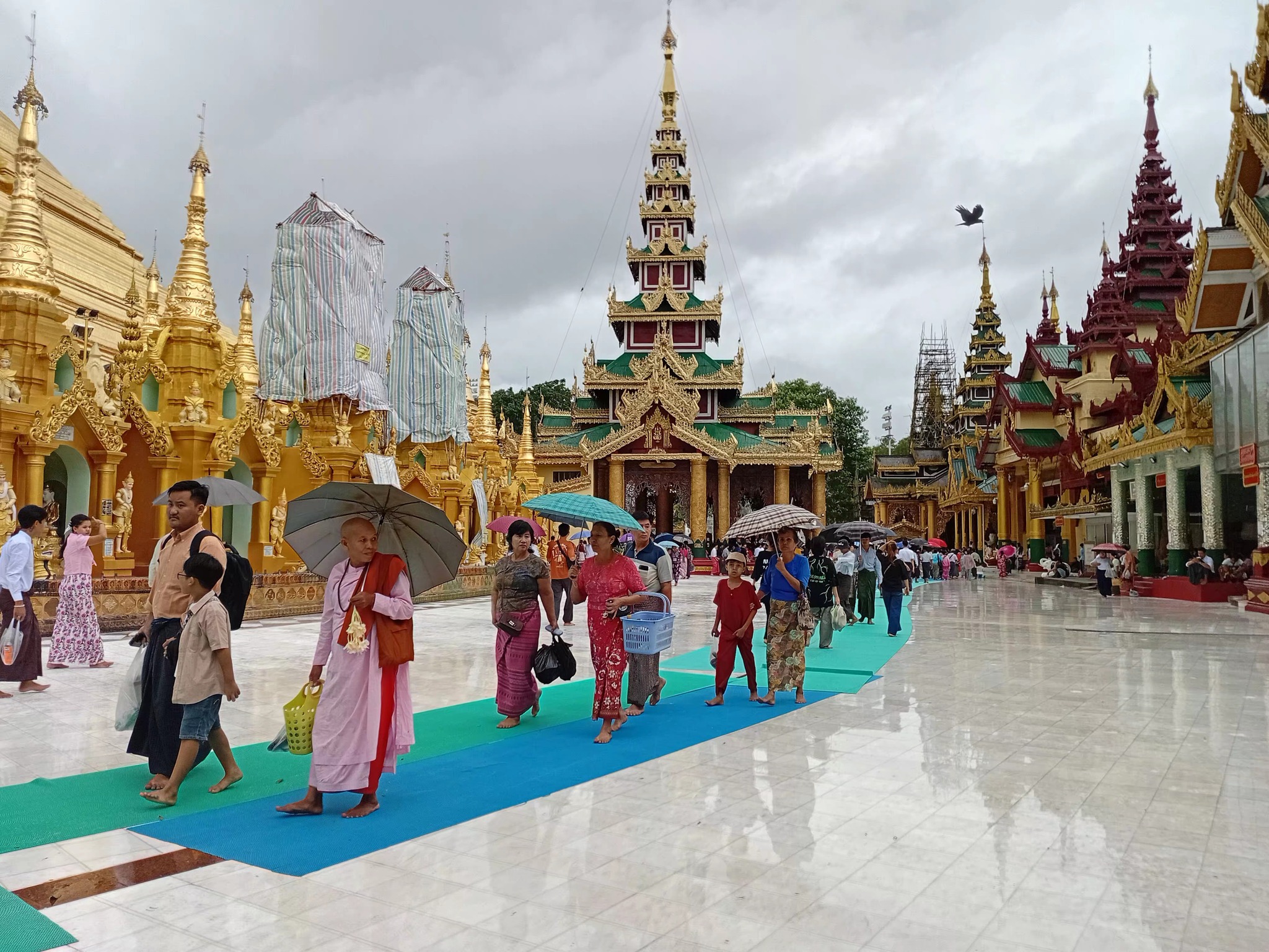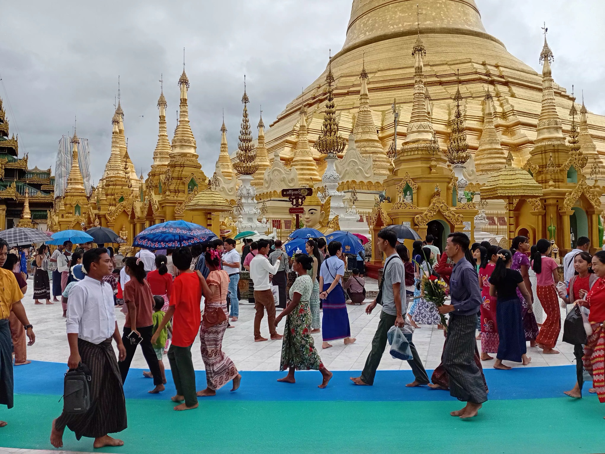 ဒီနေ့မနက်ပိုင်းမှာတော့ ရာသီဥတု မကောင်းတဲ့အတွက် ဘုရားဖူးဧည့်သည်တွေ အရင်လပြည့်နေ့တွေထက် လျော့နည်းခဲ့ပေမဲ့ ဘုရားဖူးတွေ လာရောက်နေပါတယ်။