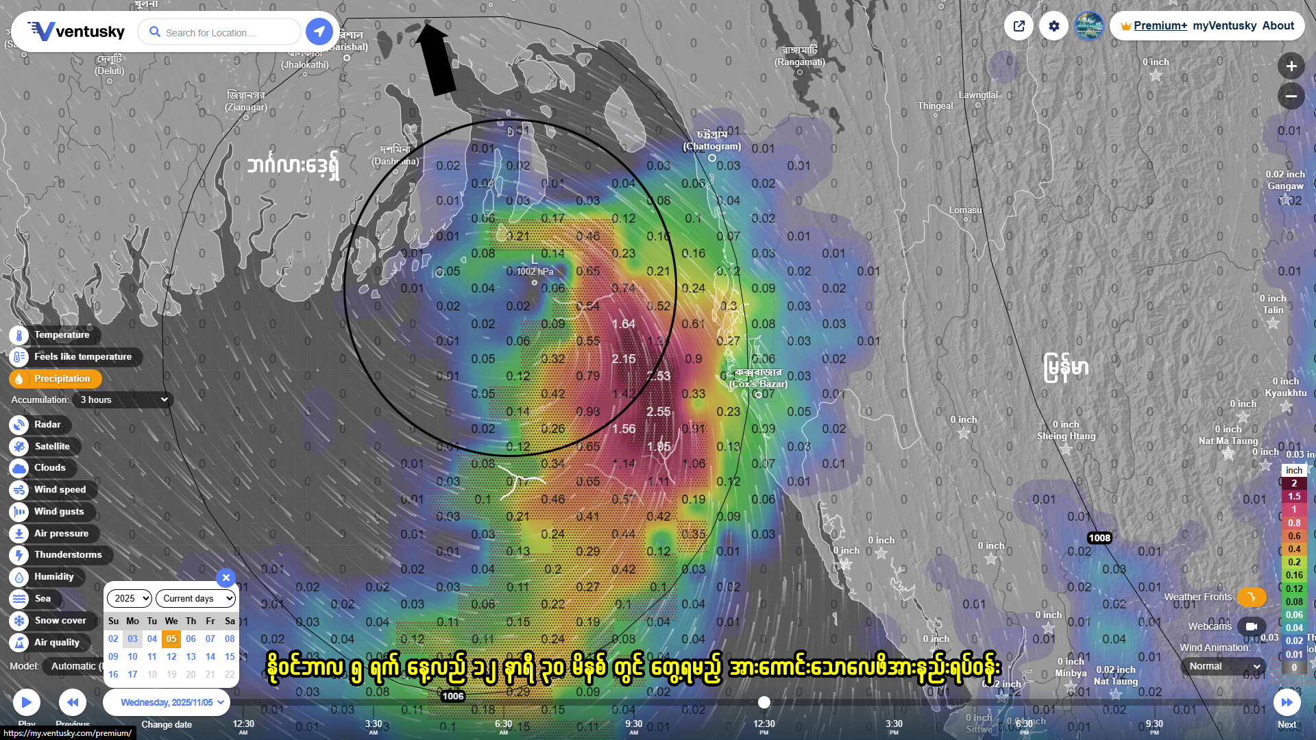 လေဖိအားနည်းရပ်ဝန်းအရှိန်နဲ့ တိုင်ဖွန်းမုန်တိုင်း KALMAEGI အကြွင်းအကျန်တွေကြောင့် ဒီကနေ့ နိုဝင်ဘာ ၄ ရက်မှာ တိုင်းနဲ့ ပြည်နယ် ၆ ခုမှာ မိုးသည်းထန်စွာ ရွာသွန်းနိုင်တယ်လို့ မိုးလေဝသ ပညာရှင် ဦးဝင်းနိုင်က ပြောပါတယ်။