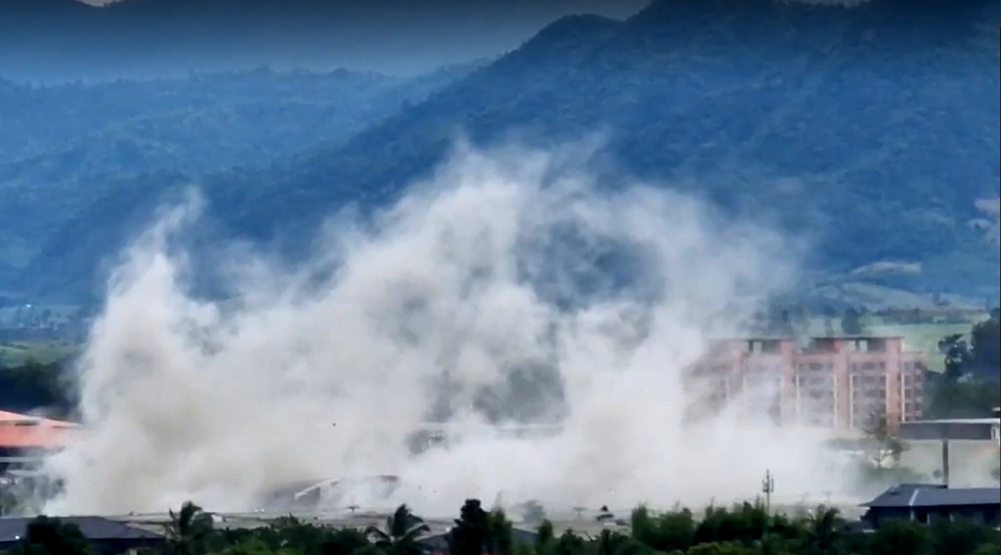 KK Park စီမံကိန်းအတွင်းက အွန်လိုင်း ကျားဖြန့် ငွေလိမ်လုပ်ငန်း လုပ်ကိုင်နေတဲ့ အဆောက်အအုံ တချို့ကို အောက်တိုဘာ ၂၃ ရက်ကစပြီး စစ်ကောင်စီတပ်နဲ့ ကရင်နယ်ခြားစောင့်တပ် (BGF) က ဗုံးဖောက်ခွဲ ဖျက်ဆီးခဲ့တာပါ။