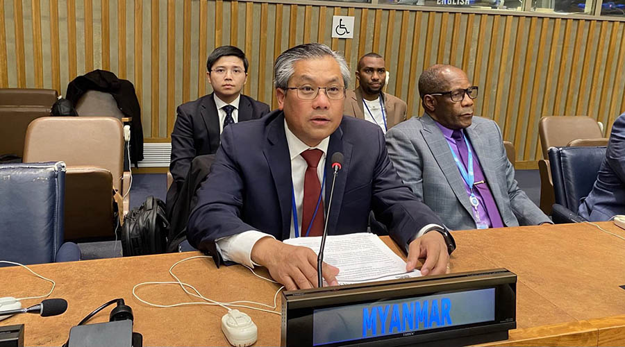 နိုဝင်ဘာ ၄ ရက်က နယူးယောက်မြို့ ကုလသမဂ္ဂဌာနချုပ်မှာ ကျင်းပတဲ့ “သတင်းအချက်အလက်များနှင့် စပ်လျဉ်းသည့်ကိစ္စရပ်များ” ခေါင်းစဉ်အောက်ကနေ နိုင်ငံ ၅၀ ကျော်က ကိုယ်စားလှယ်တွေ အထွေထွေဆွေးနွေးမှုပြုလုပ်ရာမှာ သံအမတ်ကြီး ဦးကျော်မိုးထွန်းက ပြောကြားခဲ့တာပါ။
