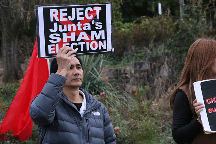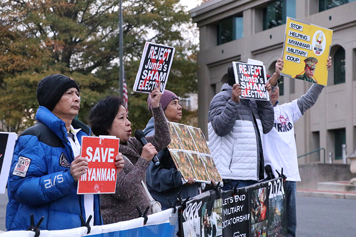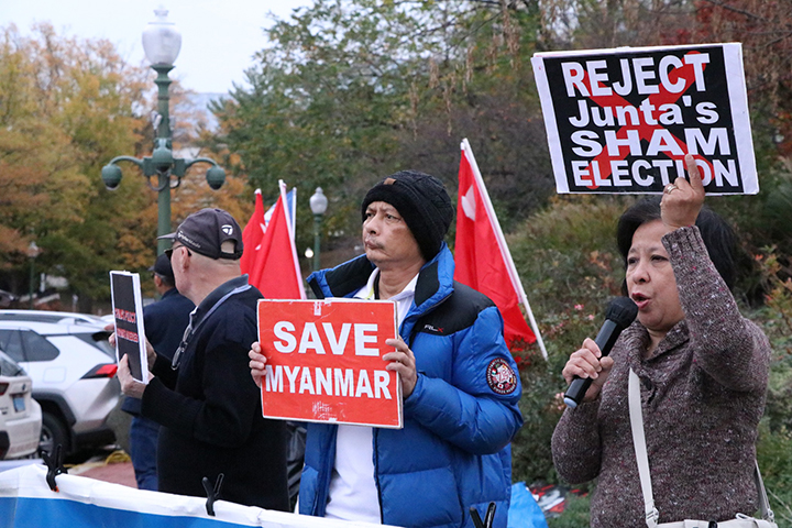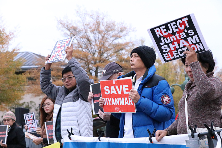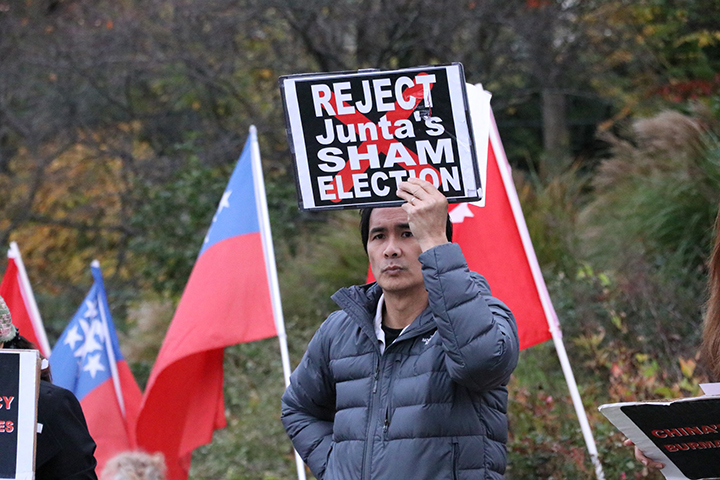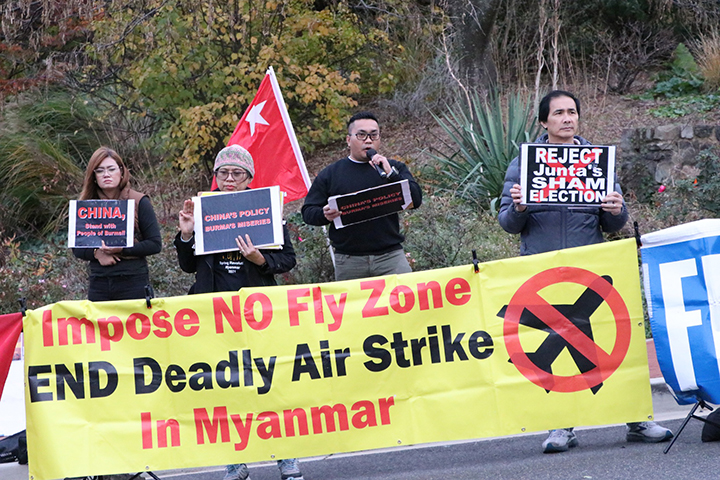 တရုတ်အစိုးရအနေနဲ့ စစ်ကောင်စီရဲ့ အတုအယောင်ရွေးကောက်ပွဲကို ထောက်ခံအားပေးနေတာနဲ့ တိုင်းရင်းသားတော်လှန်ရေး အင်အားစုတွေကို ဖိအားပေးနေတာတွေတွေကို ရပ်တန့်ဖို့ အမေရိကန်ရောက် မြန်မာ့အရေးလှုပ်ရှားသူတွေက ဆန္ဒပြတောင်းဆိုလိုက်ပါတယ်။