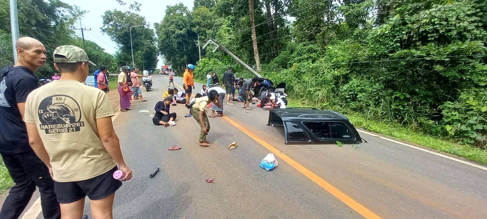 ထိုင်း-မြန်မာနယ်စပ် ကန်ကျနပူရီခရိုင်၊ ဆန်ဆလပူရီမြို့နယ်ထဲမှာ နိုဝင်ဘာ ၉ ရက် မနေ့ မွန်းလွဲပိုင်းက တရားမဝင်မြန်မာတွေ တင်ဆောင်လာတဲ့ကားတစီး စစ်ဆေးရေးဂိတ်ကို ရှောင်ပြီး အမြန်မောင်းသွားတာမှာ အရှိန်မထိန်းနိုင်ဘဲ လမ်းဘေးဓာတ်တိုင် ဝင်တိုက်လို့ ကားထဲပါလာသူ ၂၁ ယောက်လုံး ထိခိုက်ဒဏ်ရာရသွားတယ်လို့ ကန်ကျနပူရီဒေသတွင်းသတင်းမှာ ဖော်ပြပါတယ်။