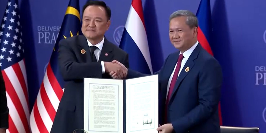 ဒီသဘောတူညီချက်ကို မလေးရှားနိုင်ငံမှာ အမေရိကန်သမ္မတ ဒေါ်နယ်ထရမ့်ပ်ရဲ့ ကြီးကြပ်မှုနဲ့ လွန်ခဲ့တဲ့ အောက်တိုဘာလတုန်းကပဲ နှစ်ဖက်ဝန်ကြီးချုပ်တွေ လက်မှတ်ရေးထိုးခဲ့တာဖြစ်ပြီး အခုဆိုရင် အချိန် ၂ ပတ်ပဲ ရှိပါသေးတယ်။