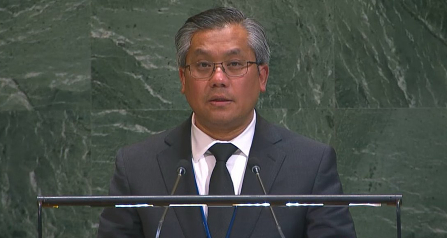 နိုဝင်ဘာ ၁၁ ရက်က နယူးယောက်မြို့မှာ ကျင်းပခဲ့တဲ့ အကြိမ် ၈၀ မြောက်၊ ကုလသမဂ္ဂ အထွေထွေညီလာခံ၊ မျက်နှာစုံညီ အစည်းအဝေးရဲ့ "အပြည်ပြည်ဆိုင်ရာ ရာဇဝတ်တရားရုံး၏ အစီအရင်ခံစာ” ခေါင်းစဉ်နဲ့ ဆွေးနွေးပွဲမှာ သံအမတ်ကြီးက ခုလိုတင်ပြဆွေးနွေးခဲ့တာဖြစ်ပြီး တရားမဝင်အာဏာသိမ်း စစ်အုပ်စုက စီစဉ်နေတဲ့ အတုအယောင် ရွေးကောက်ပွဲကို ပြတ်ပြတ်သားသား ပယ်ချကြဖို့လည်း တိုက်တွန်းထားပါတယ်။