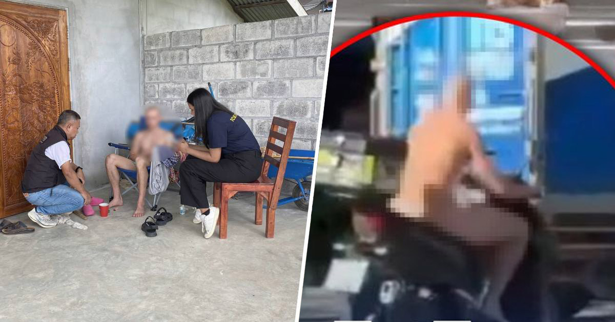 ထိုင်းမြောက်ပိုင်း ကမ်ဖိုင်ဖစ်ခရိုင် ခလောင်းလန်းမြို့ထဲမှာ နိုဝင်ဘာ ၁၆ ရက်မနက်က နိုင်ငံခြားသားတယောက် အဝတ်အစားမပါ ကိုယ်လုံးတီးနဲ့ မော်တော်ဆိုင်ကယ်စီးပြီး ဈေးလာဝယ်လို့ အနီးနားဝန်းကျင်က လူတွေအားလုံး အံ့အားသင့်ကုန်ကြပါတယ်။