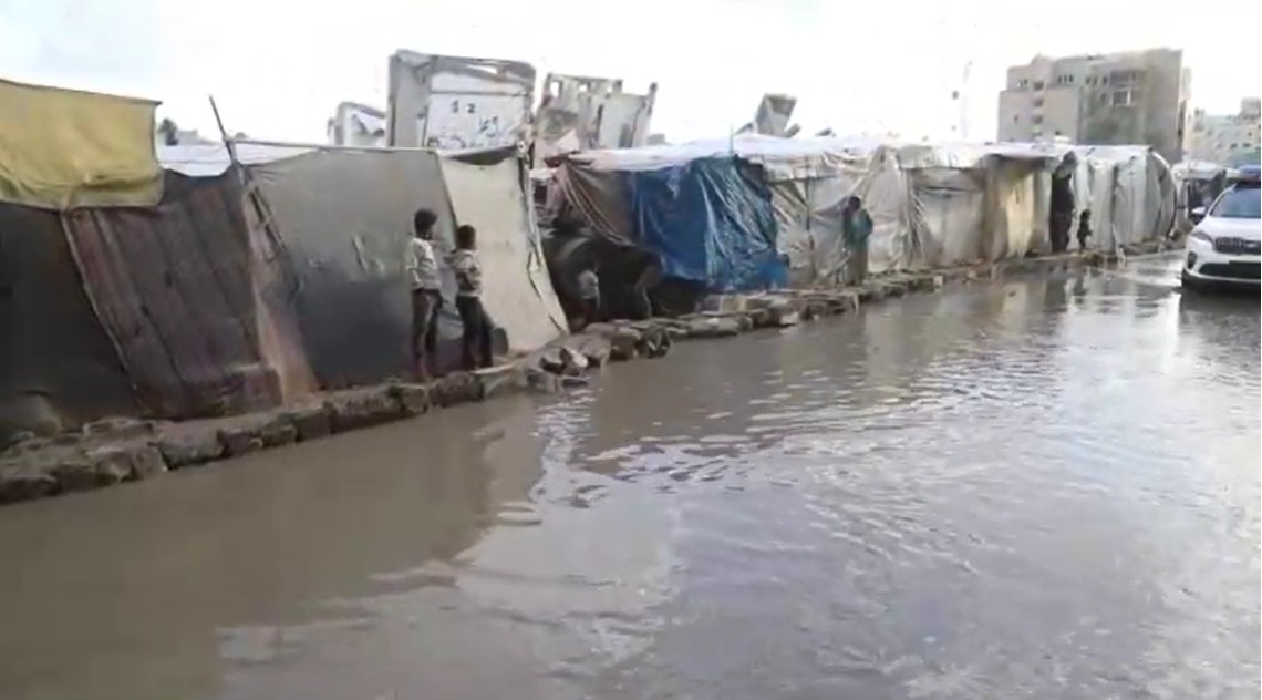 ဆောင်းရာသီ မိုးရွာသွန်းမှုကြောင့် ဂါဇာကမ်းမြောင်က ရွှေ့ပြောင်းနေထိုင်သူတွေ နေထိုင်ရာ ယာယီစခန်းတွေမှာ ရေလွှမ်းခဲ့ပါတယ်။