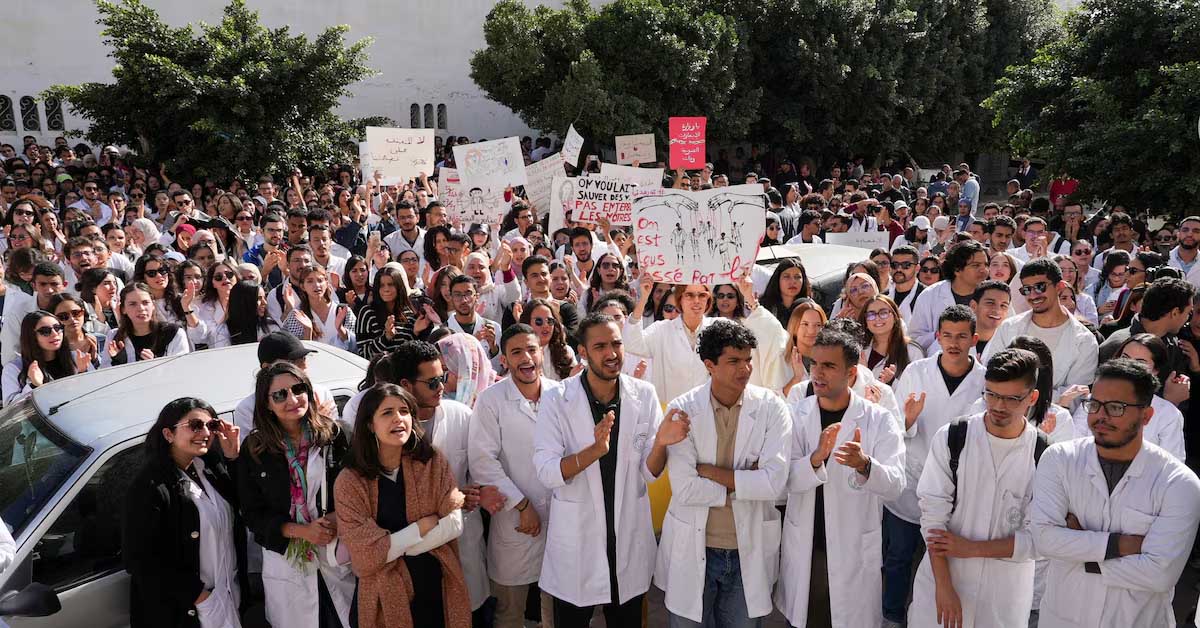 တူနီးရှားနိုင်ငံတဝန်းမှာ နိုဝင်ဘာ ၁၉ ရက်က လူငယ်ဆရာဝန် ထောင်ပေါင်းများစွာဟာ လစာတိုးမြှင့်ပေးဖို့ တောင်းဆိုရင်း ကျန်းမာရေးစနစ် ပြိုလဲတော့မယ်လို့ သတိပေးပြီး သပိတ်မှောက်ခဲ့ကြပါတယ်။
