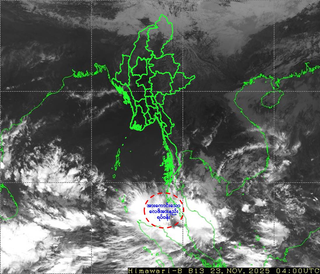 မြန်မာနိုင်ငံတောင်ပိုင်းမှာ ဖြစ်နေတဲ့ လေဖိအားနည်းရပ်ဝန်းဟာ ပိုအားကောင်းလာပြီး မနက်ဖြန်မှာ မုန်တိုင်းငယ် ဖြစ်လာနိုင်တယ်လို့ မိုးလေဝသဌာနက နိုဝင်ဘာ ၂၃ ရက် ဒီနေ့လယ်မှာ ထုတ်ပြန်ပါတယ်။