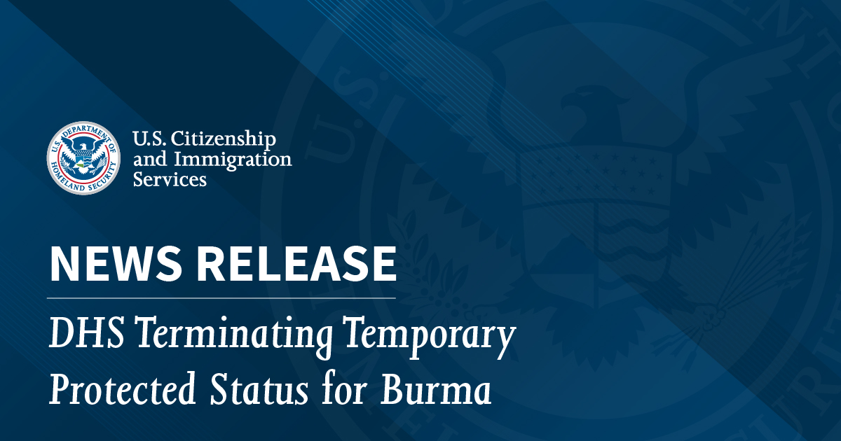 မြန်မာနိုင်ငံမှာ အာဏာသိမ်းစစ်တပ်က အရေးပေါ်အခြေအနေကို ရုပ်သိမ်းပြီး စစ်ကောင်စီကနေ စစ်ကော်မရှင်ကို အာဏာလွှဲပြောင်းလိုက်တာ၊ လာမယ့်နှစ်ကုန်ပိုင်းမှာ ရွေးကောက်ပွဲလုပ်ဖို့ စီစဉ်နေတာနဲ့ စစ်တပ်နဲ့ တိုင်းရင်းသားလက်နက်ကိုင်တပ်တွေကြား အပစ်ရပ် သဘောတူညီချက်ရတာတွေကြောင့် TPS ကို သက်တမ်းမတိုးတော့တာလို့ အမေရိကန် အမိမြေလုံခြုံရေးဝန်ကြီးဌာနရဲ့ နိုင်ငံသားဖြစ်မှုနဲ့ လူဝင်မှုကြီးကြပ်ရေးဌာနက ထုတ်ပြန်ပါတယ်။