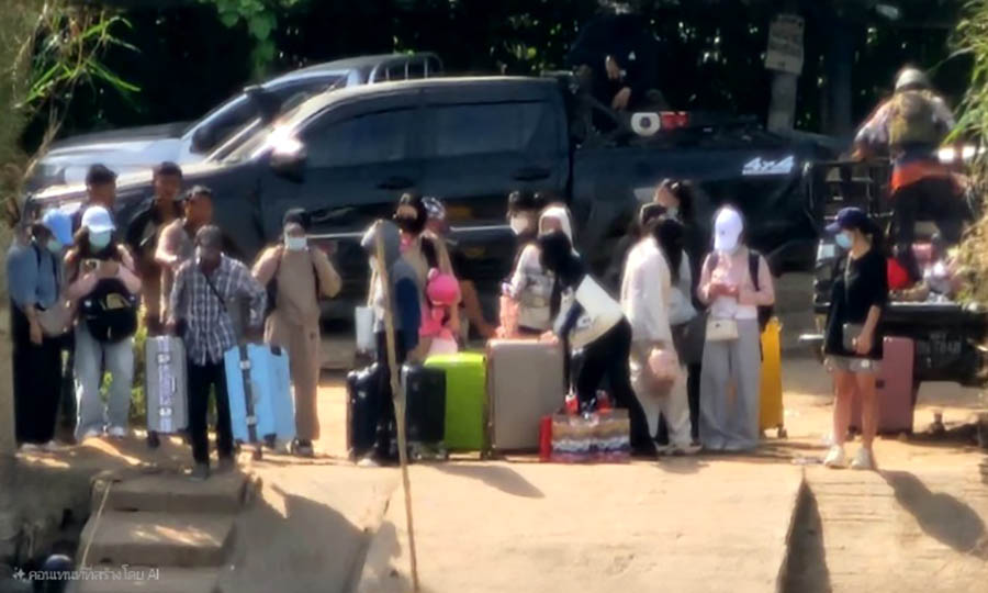 ထိုင်း-မြန်မာနယ်စပ် သောင်ရင်းမြစ်ကမ်းစပ်မှာရှိတဲ့ မင်းလက်ပံ ကျားဖြန့်ရုံမှာ တရုတ်နိုင်ငံသားတွေ အပါအဝင် နိုင်ငံခြားသား အယောက် ၃,၀၀၀ လောက်ရှိပြီး ထိုင်းဘက်ကို ထွက်ပြေးနိုင်သူ တချို့ရှိသလို အများစုကတော့ ရုံအတွင်းမှာပဲ ပိတ်မိနေပါတယ်။